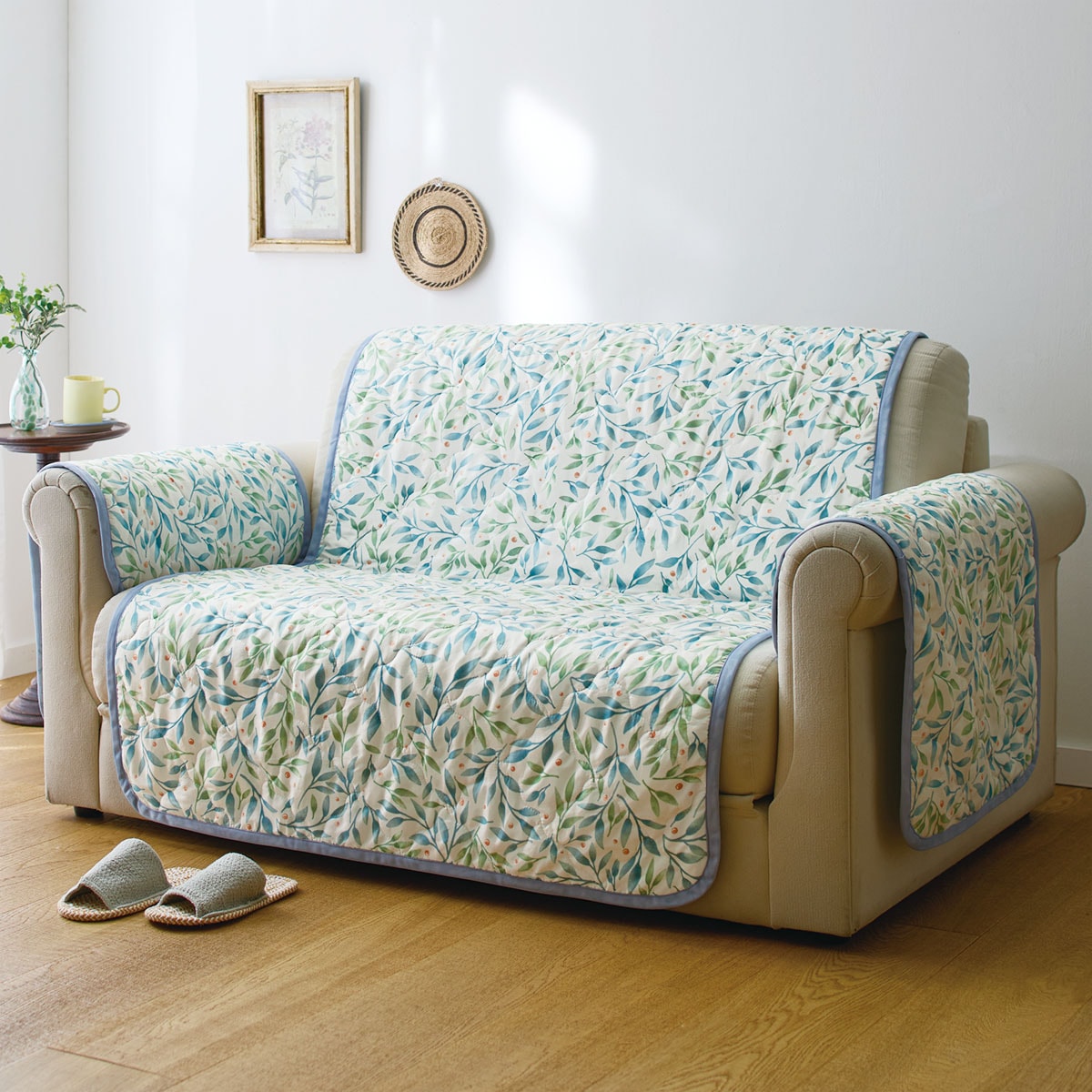 触れるとひんやり強冷感!寝具で大好評のスマートドライにソファカバーが新登場!3シーズン使えるリバーシブル仕様です。裏面は草花柄でやわらかい生地を使用しています。