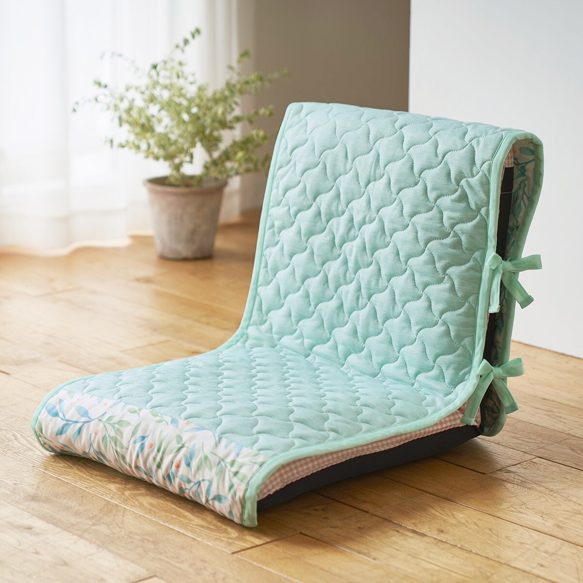 腰かけるたびに心地よい清涼感。ひんやりキルトチェアカバーです。