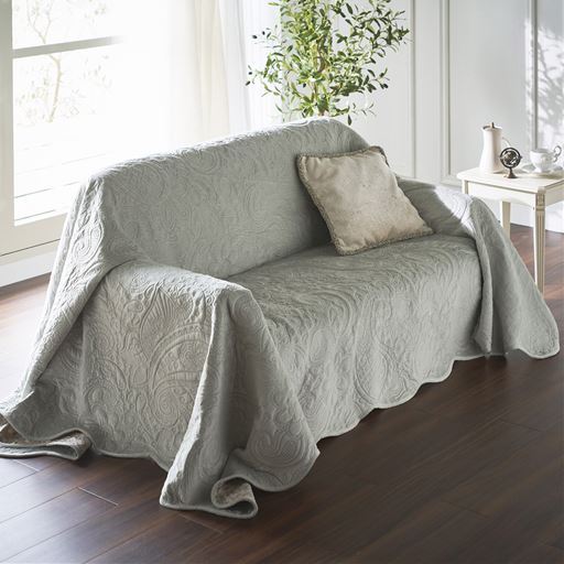 グレー 250×200cm 2つの柄が楽しめる!ソファカバーとしてはもちろん、ベッドカバー、ラグなどにもお使いいただけます。