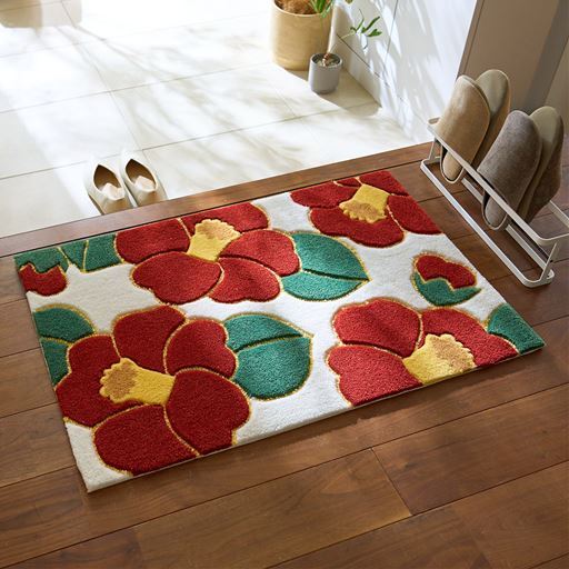レッド(椿) 横85×縦55cm明るく大きな花柄でお客様をお出迎え! フラワー玄関マットです。