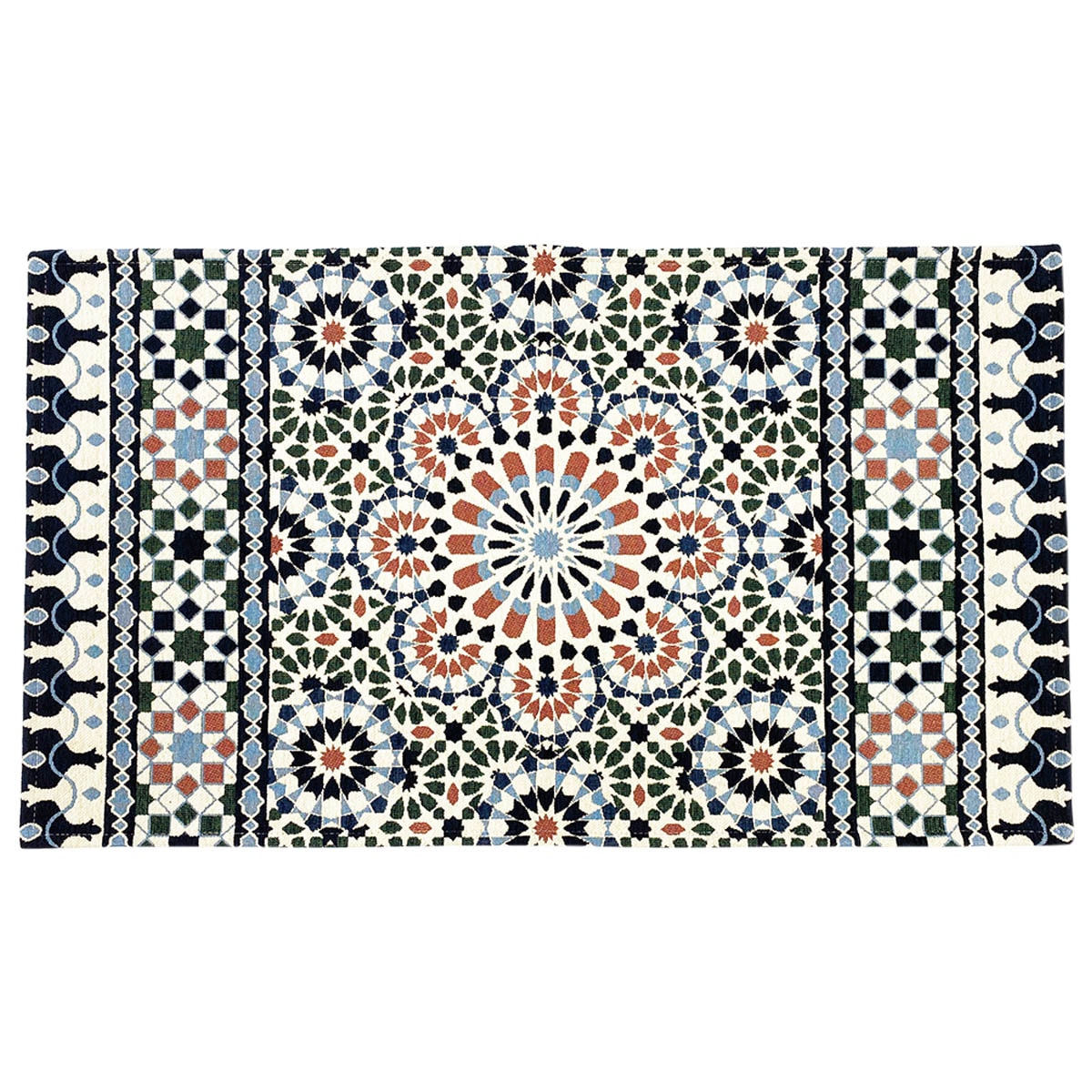 120×70cm ブルー オリエンタルな柄が玄関をオシャレに モザイクタイルのような凛としたデザイン