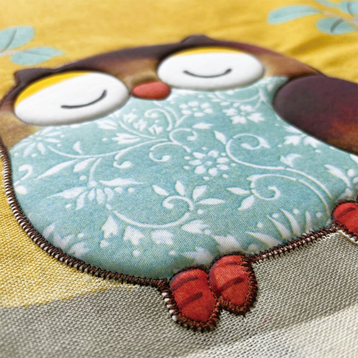 メインモチーフを立体的なアップリケで仕上げることで、あたたかみのあるデザインに。(Bふくろう)