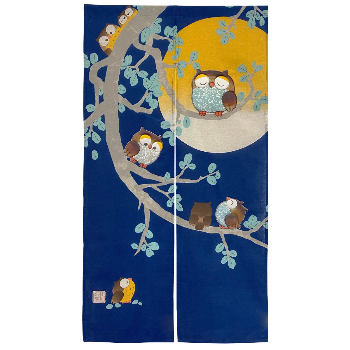 落ち着いた色合いに木の上で一休みするフクロウが可愛いのれん。お部屋を癒しの空間にしてくれます。(Bふくろう)