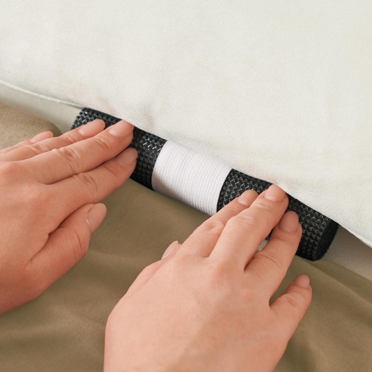 ソファカバーのズレを防ぐ固定パイプ付き。