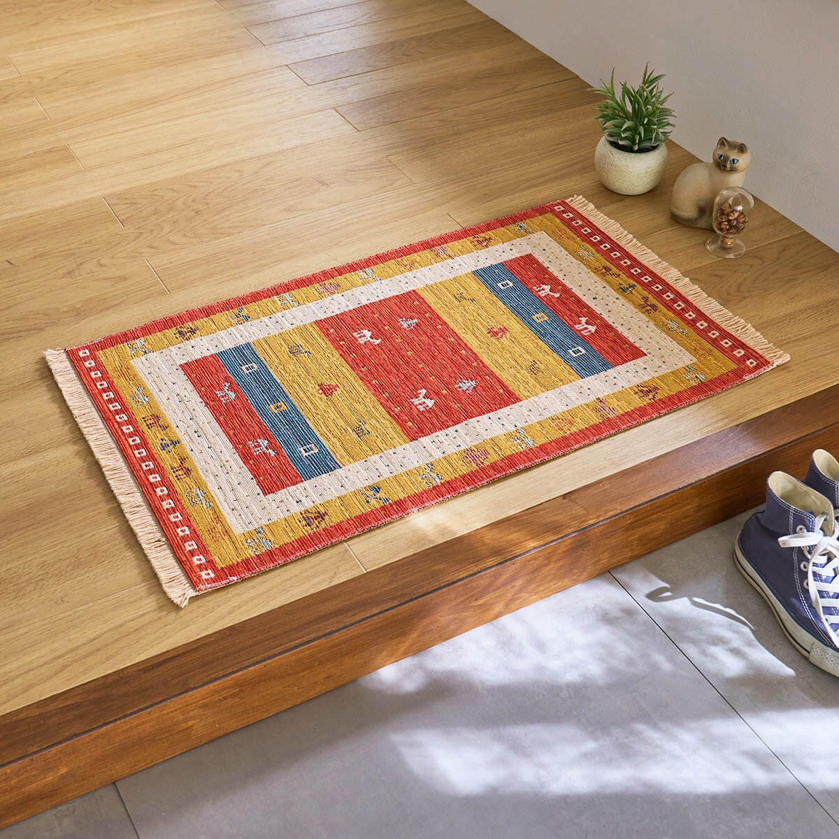 玄関を明るく楽しく! エスニック調の色柄が印象的なトルコ製の玄関マットです。