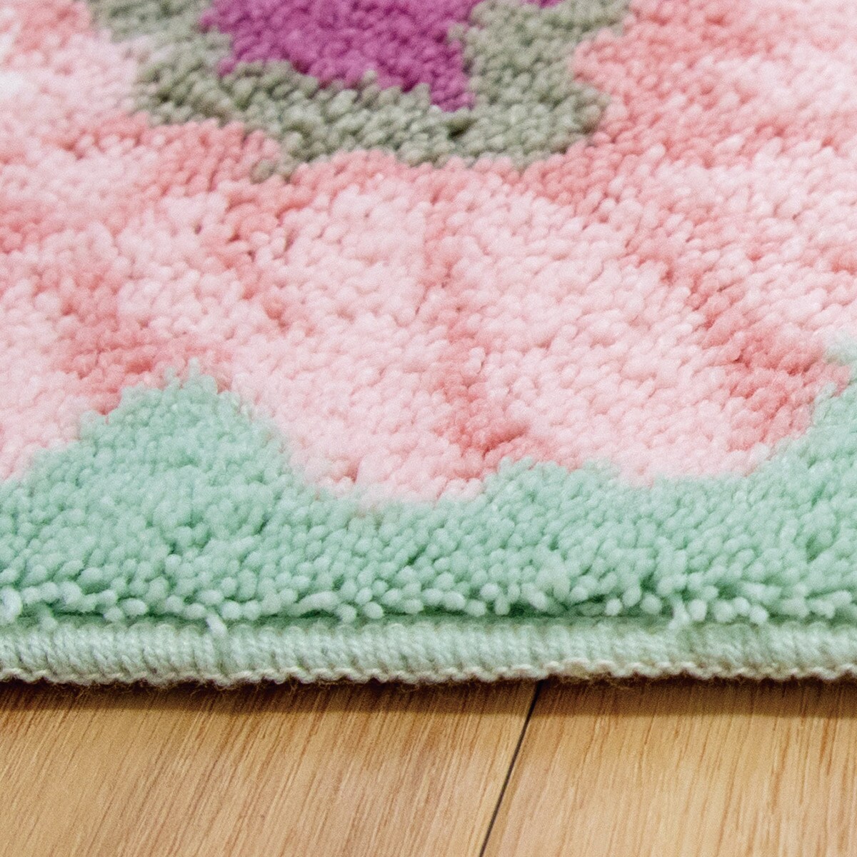 生地拡大 ブルー系(ピンクフラワー)毛足が長くふわふわの踏み心地。
