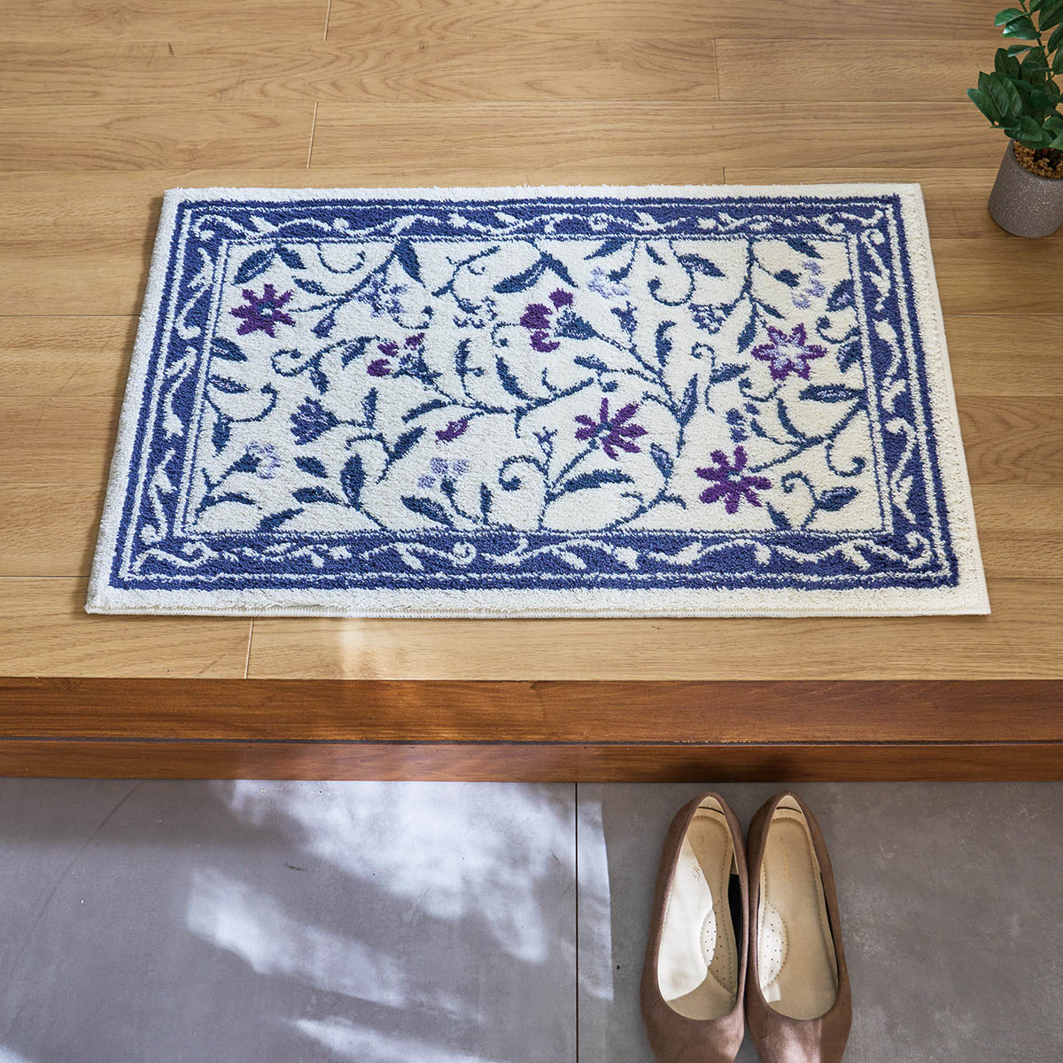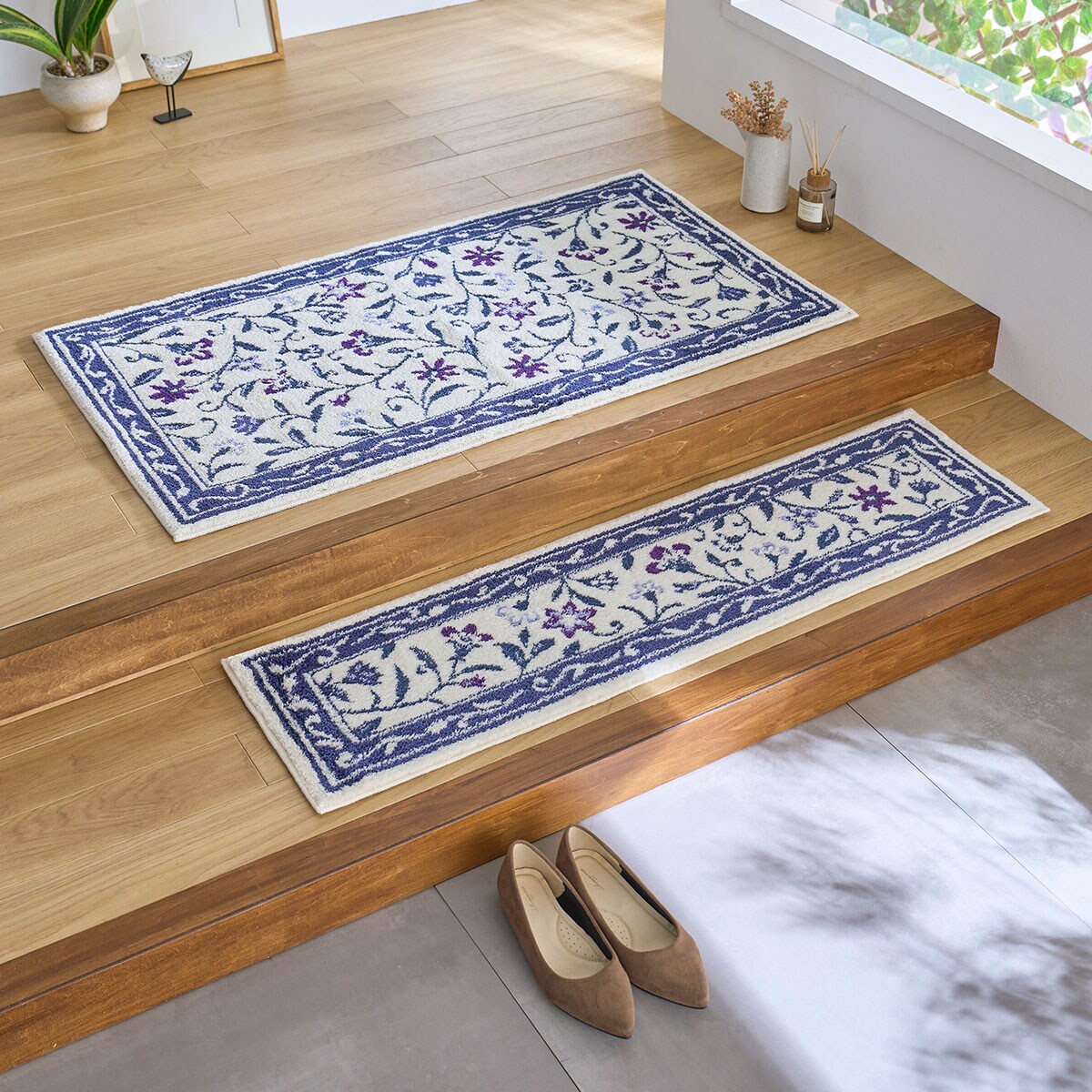 (上から)横110×縦60cm・横110×縦30cm ネイビー系(サラサ)ふかふかの花柄マットで玄関を明るい印象に。