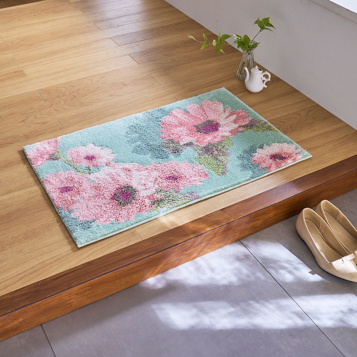 国内生産で1枚1枚丁寧に仕上げたふかふかのウィルトン織り玄関マットです。空間を華やかに演出する花柄で、お客様をお出迎え。
