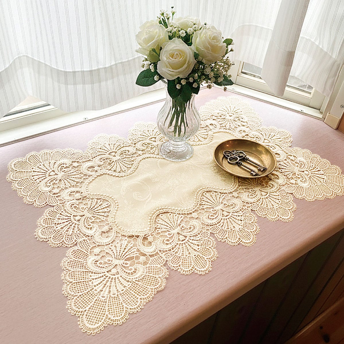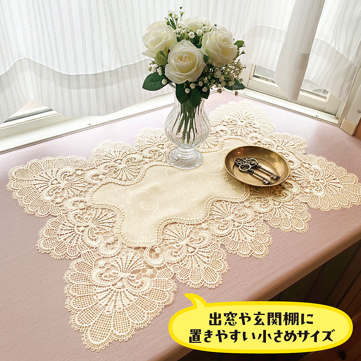 レースが華やかなはっ水テーブルセンター