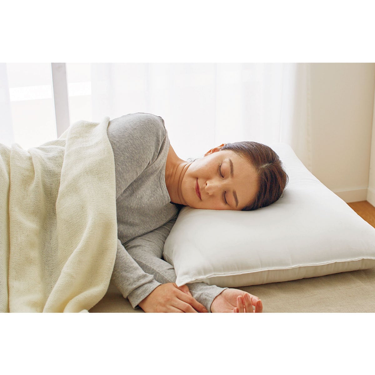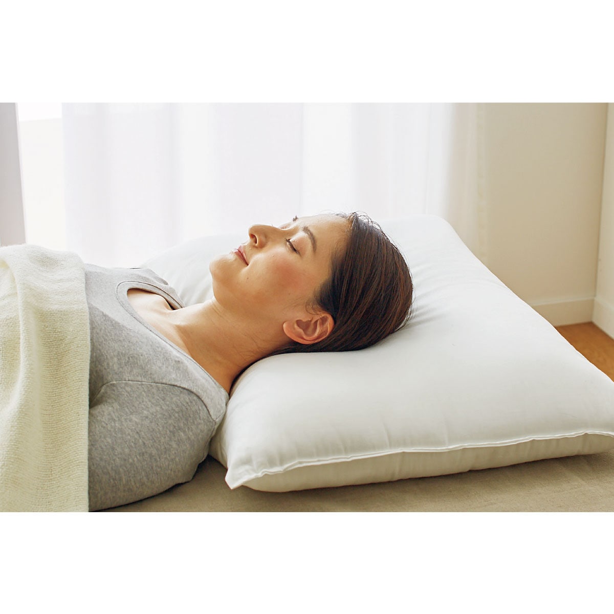仰向け寝頭と首が心地よくフィットし、首が身体に対してまっすぐに。