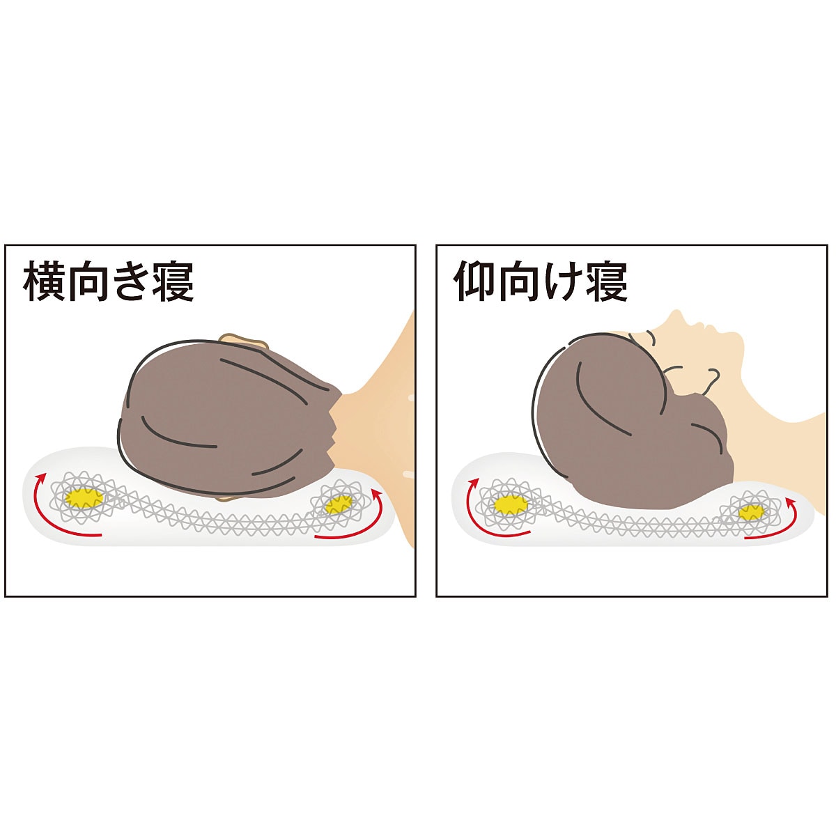 横向き寝エアトラス芯材が首の下のすき間を埋めるようにすべり込み、寝返りもラクラクです。