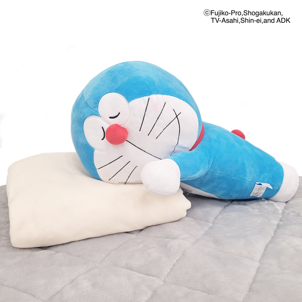 すやすや気持ちよさそうに寝ている、ドラえもんの添い寝枕です。※小物は付属しておりません。