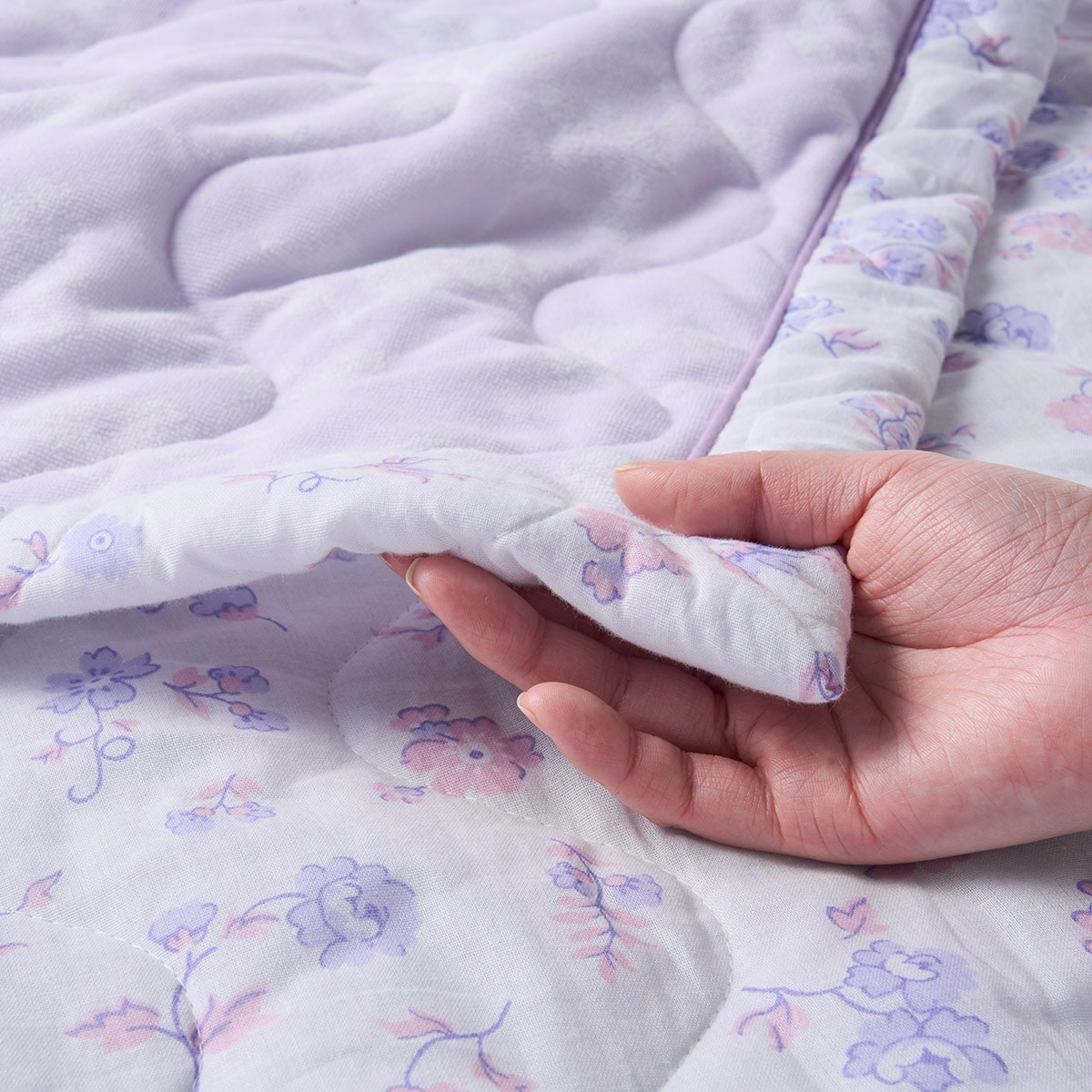 ラベンダー系ガーゼとパイルの欲ばりな肌当たり。サラリと快適な肌掛け布団です。