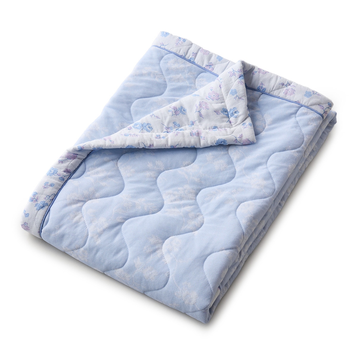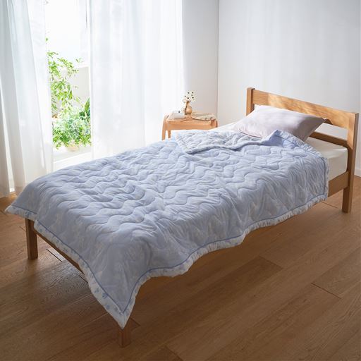 ガーゼとパイルの欲ばりな肌あたりが心地いい、サラリと快適な肌掛け布団です。ナチュラルな小花柄がお部屋を上品な印象に。冷房対策にもおすすめです。