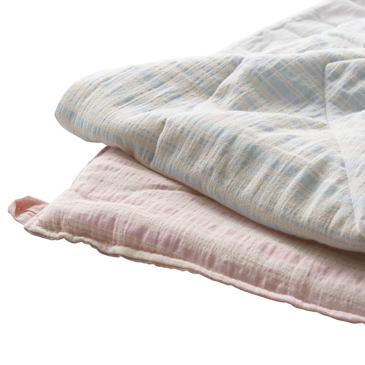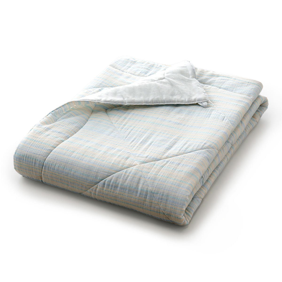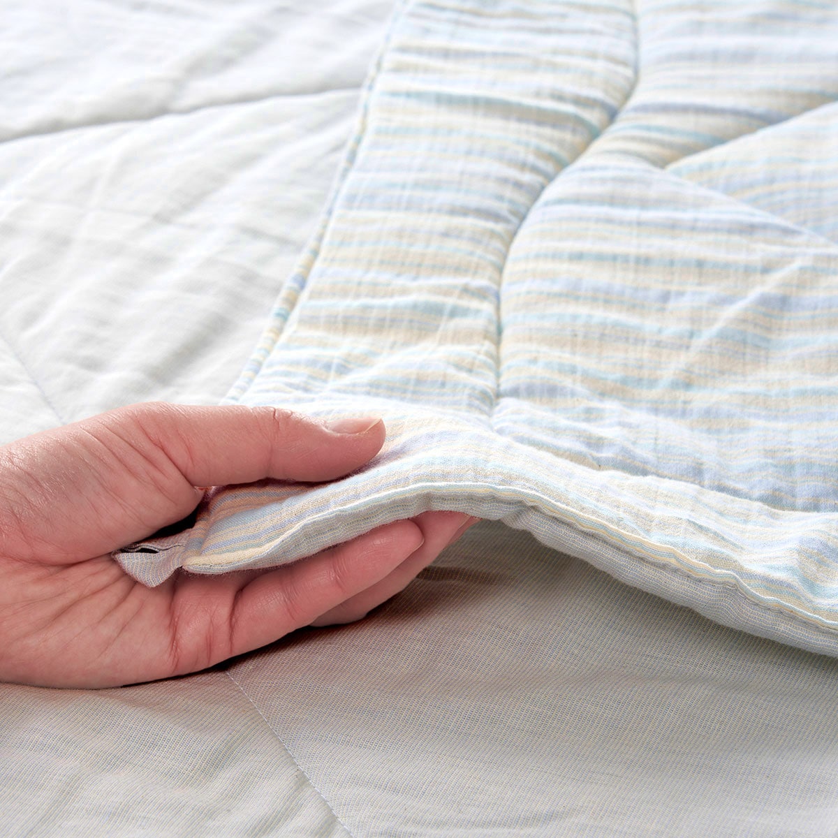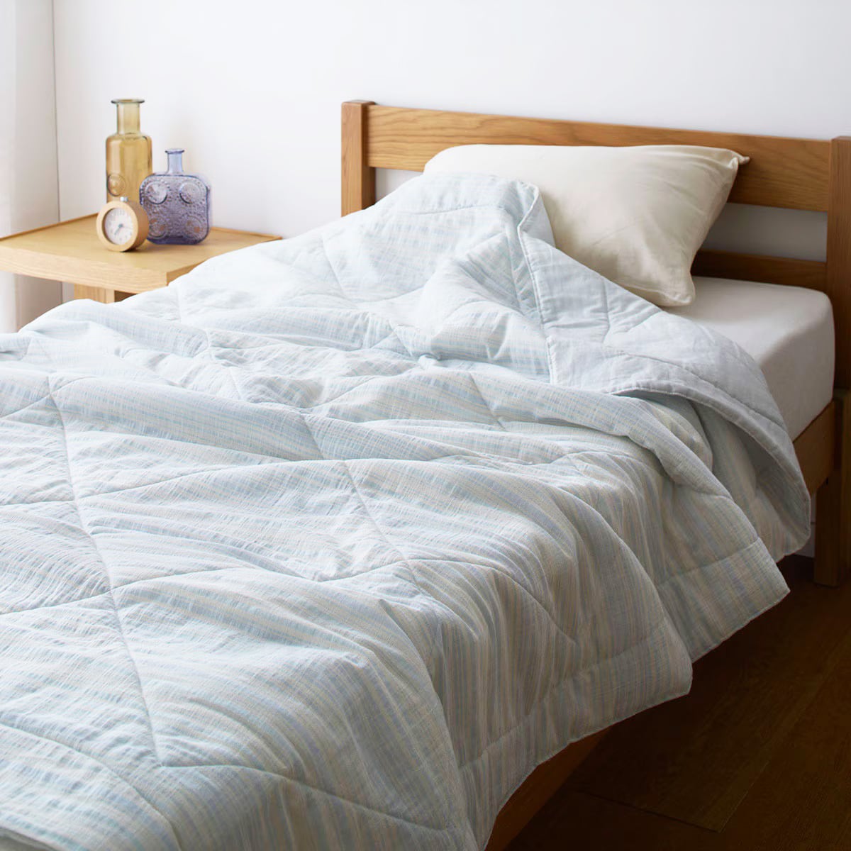 ブルーやわらかなシャリ感が心地いい高島ちぢみ肌掛け布団です。