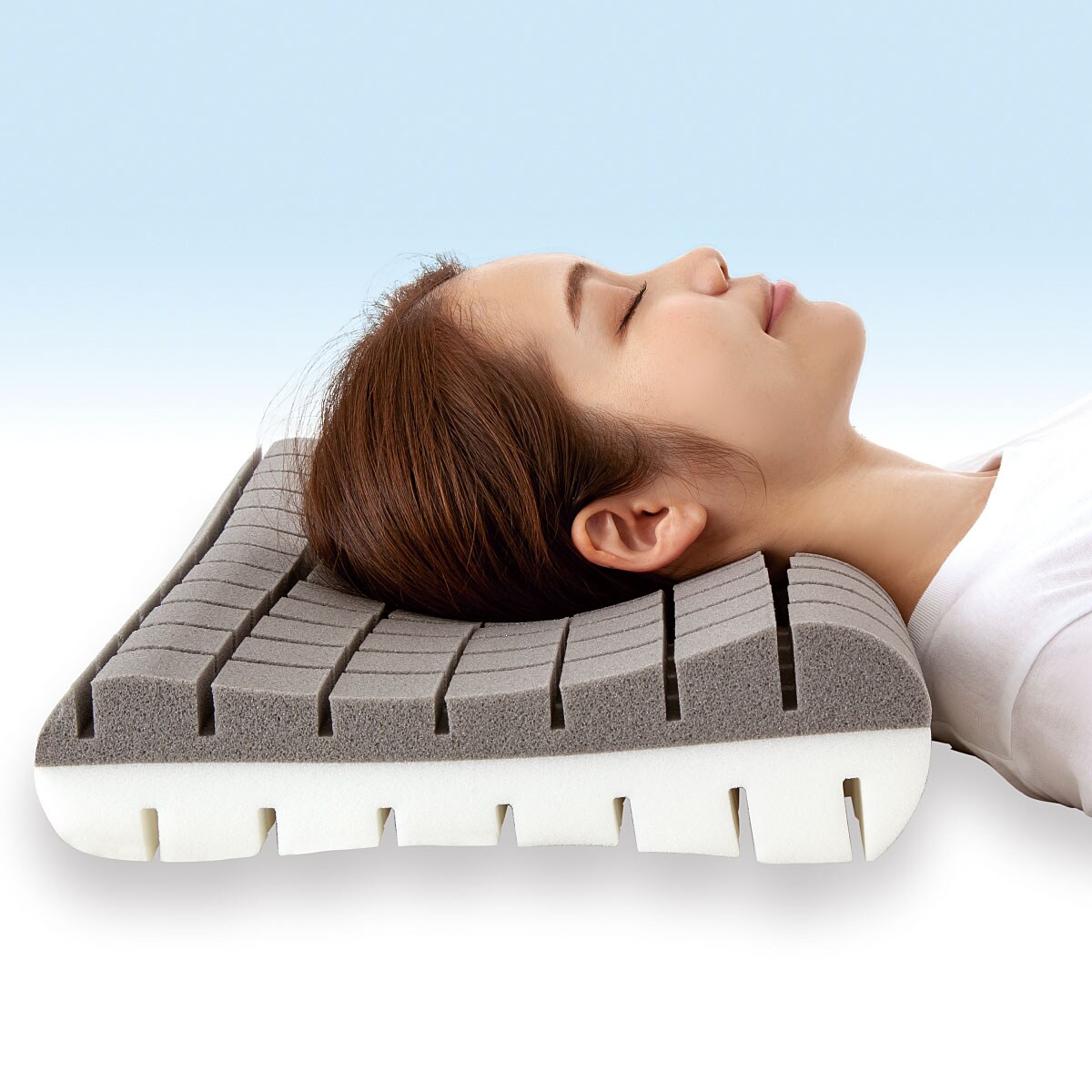 頭の形に沿ってフィットするスリット入りの立体ウレタン。頭部の動きに合わせてフィットするのでどんな寝姿勢でも心地よく快適。リバーシブル仕様で低反発と高反発お好みの固さを選べます。