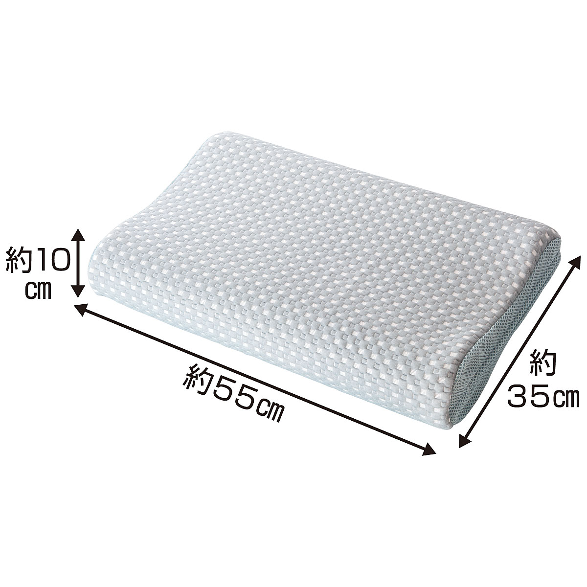 ■[枕カバー]布地部:ポリエステル72%、レーヨン27%、ポリウレタン1% メッシュ部:ポリエステル100%[内カバー]ポリエステル100%[中芯]ポリウレタン■サイズ(約cm)/55×35×10●洗濯機OK(カバーのみ)●中国製