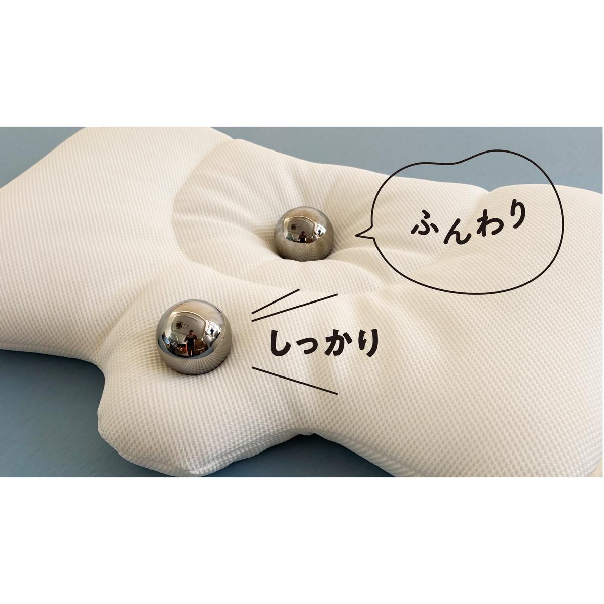 中材のビーズ・わたの配合を首部・頭部で変えることで頭部のホールド感と寝心地をアップ