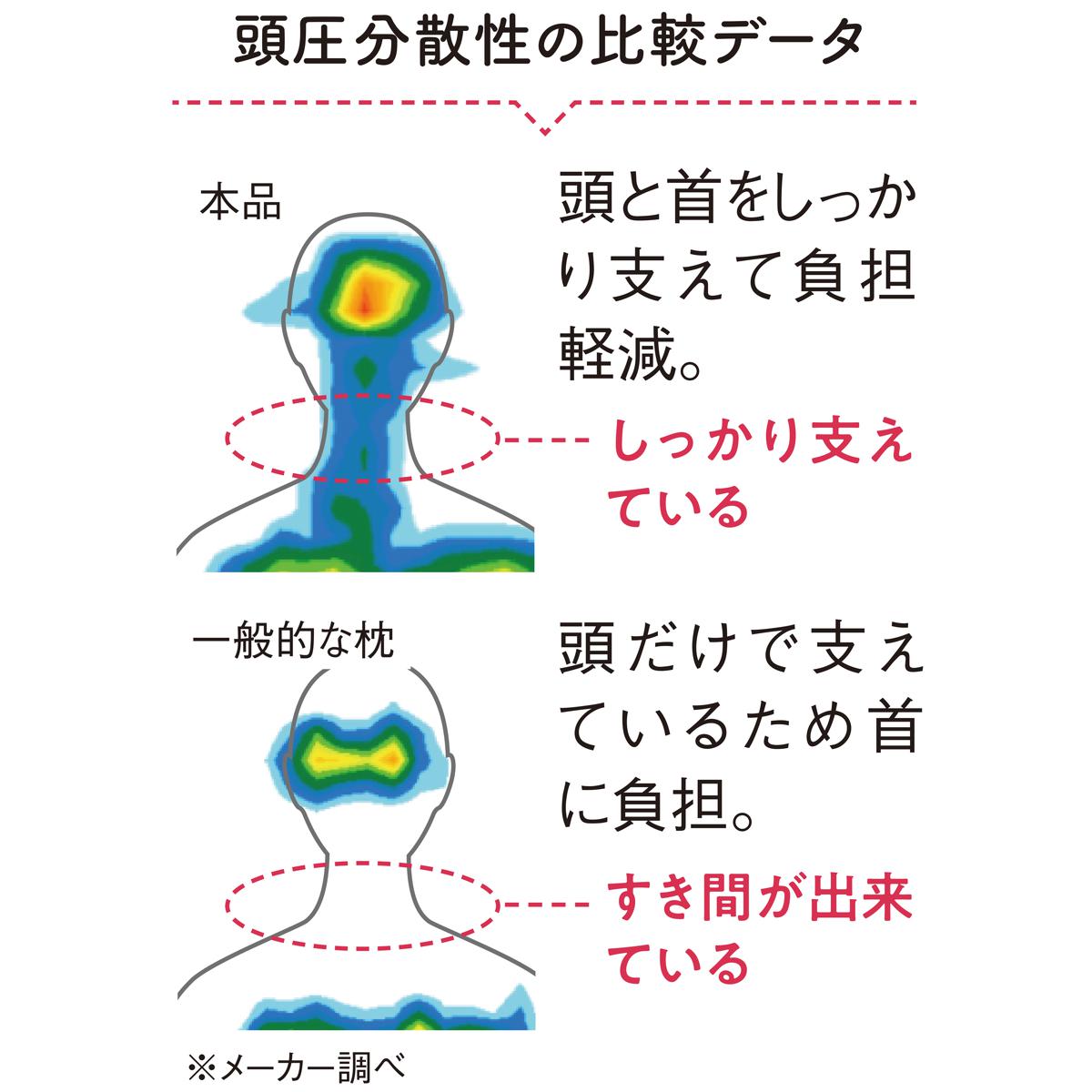 枕の端でも頭が落ちない構造 頭が落ちやすく首に力が入りやすい枕の端でもしっかり頭を支えるので首の負担を軽減します。