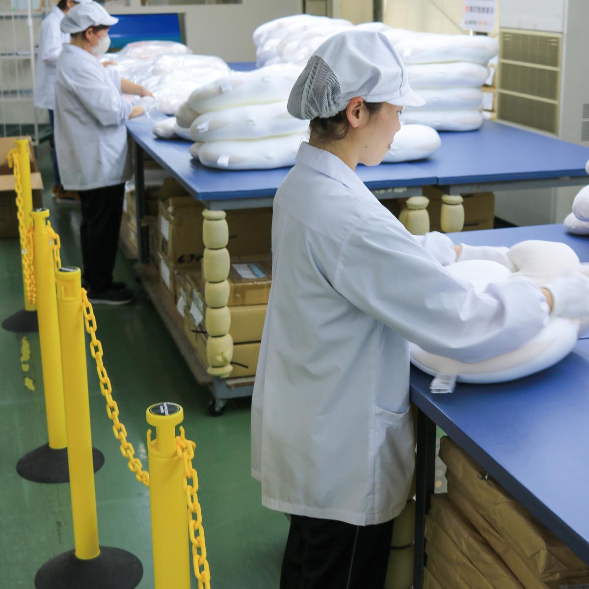 品質にこだわり、国内工場で職人がひとつひとつ枕を丁寧に仕上げています。