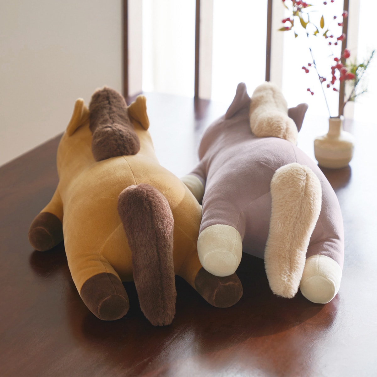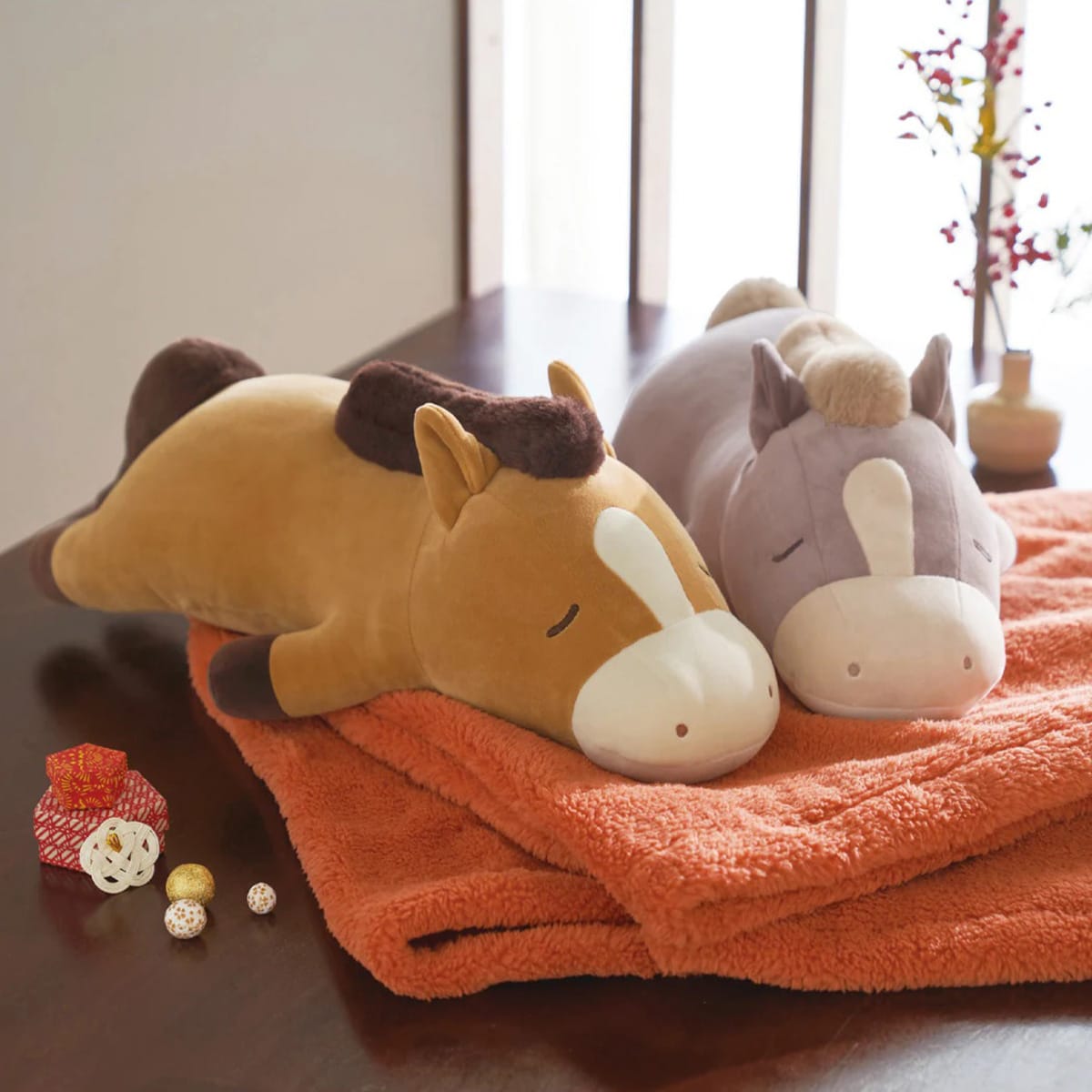 2026年干支の午(うま)が仲間入り!癒される表情とくったりとしたフォルムがかわいい抱き枕です。なめらかなでもっちりとした肌ざわりで、ぎゅっと抱きしめてリラックス。寝室やリビングに置くだけで、癒し空間に。