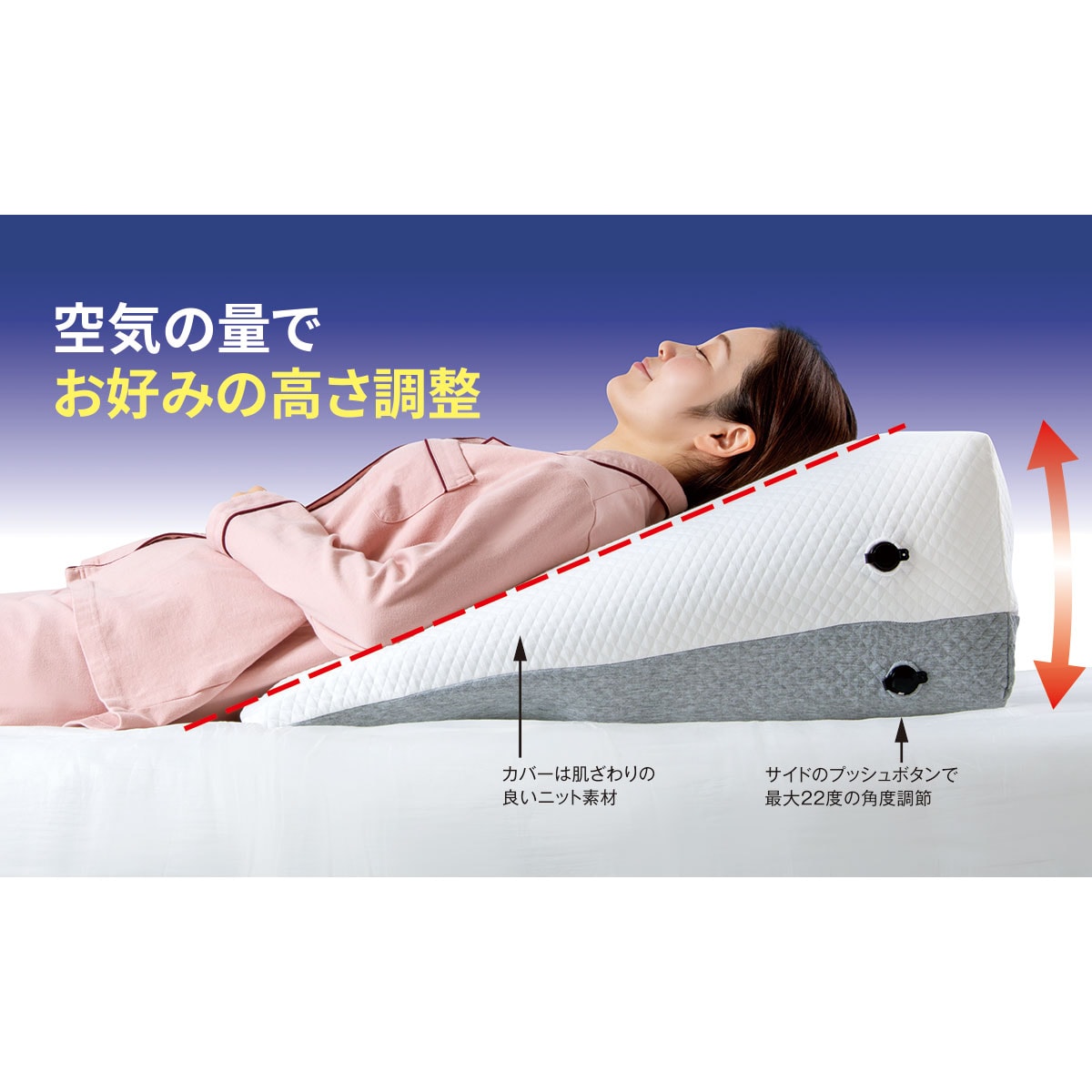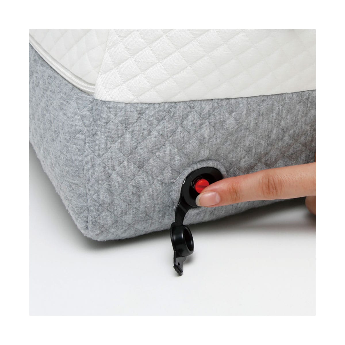 その日の体調に合わせてご自身にあった角度へ最大約22度まで微調整が可能。空気を入れたり抜いたりすることによって、好みに合わせて高さや傾斜を調整できます。