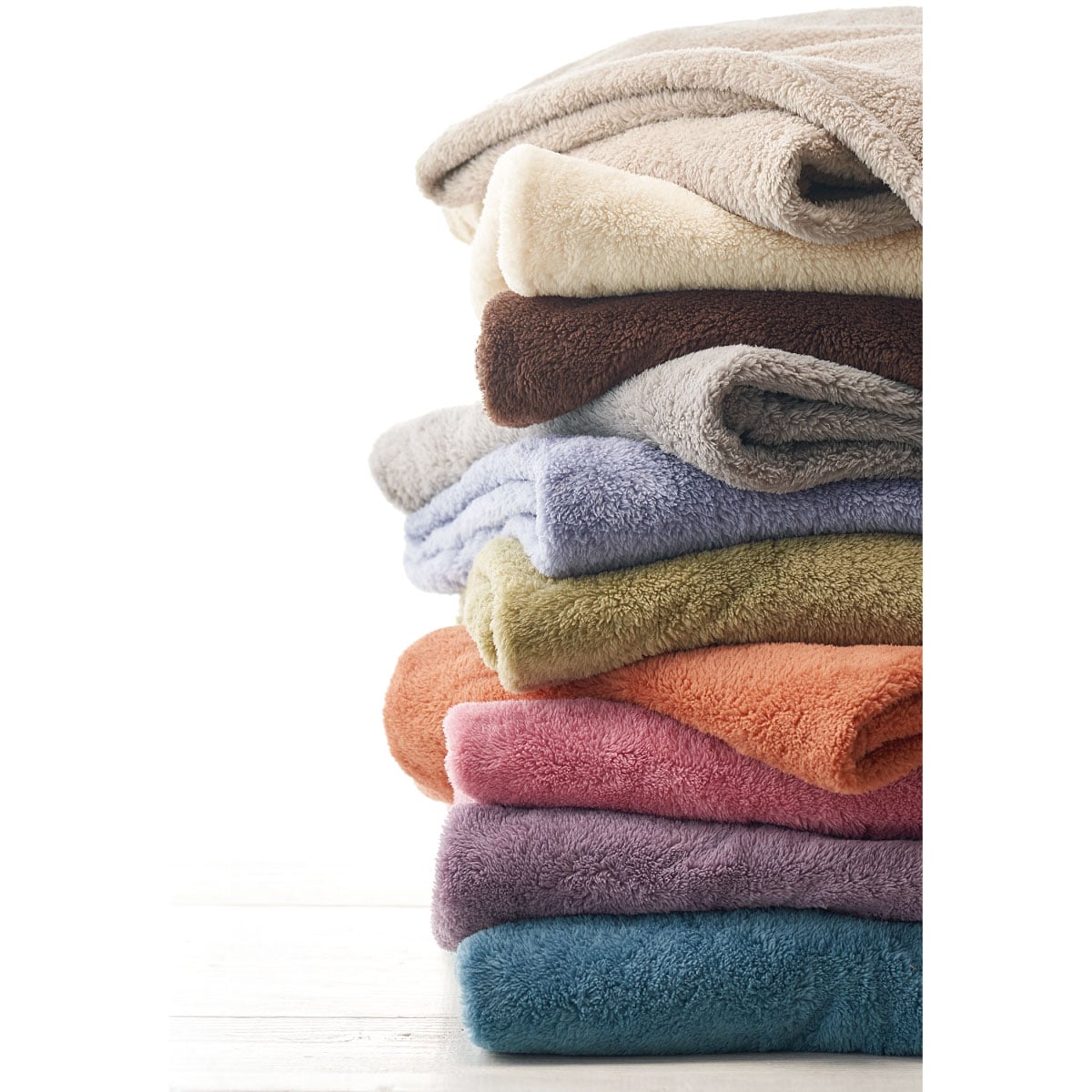 (上から)オークベージュ、アイボリホワイト、コーヒーブラウン、ミディアムグレー、アンティックブルー、オリーブグリーン、アプリコット、ローズピンク、ミスティラベンダー、ターコイズブルー 毛布