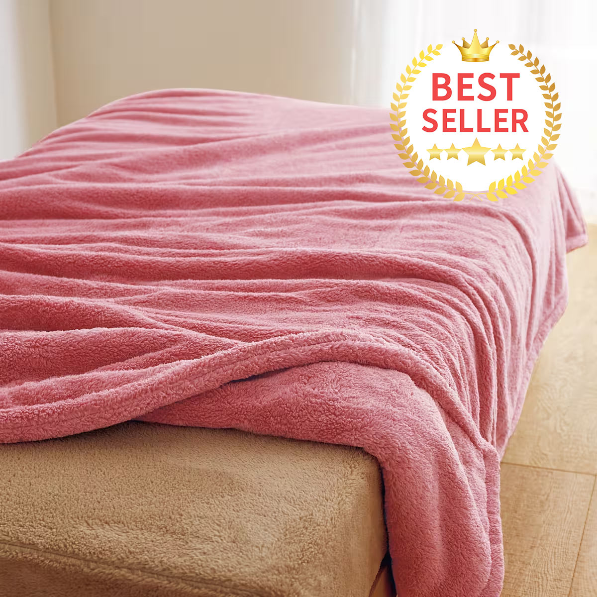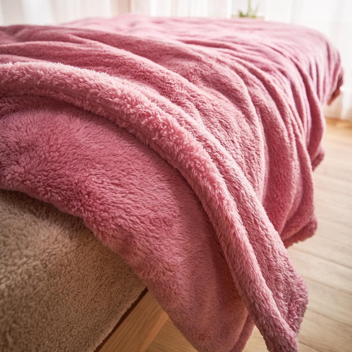 ローズピンクふわふわかる~いぬくもりのマイクロファイバー2枚合わせ毛布です。