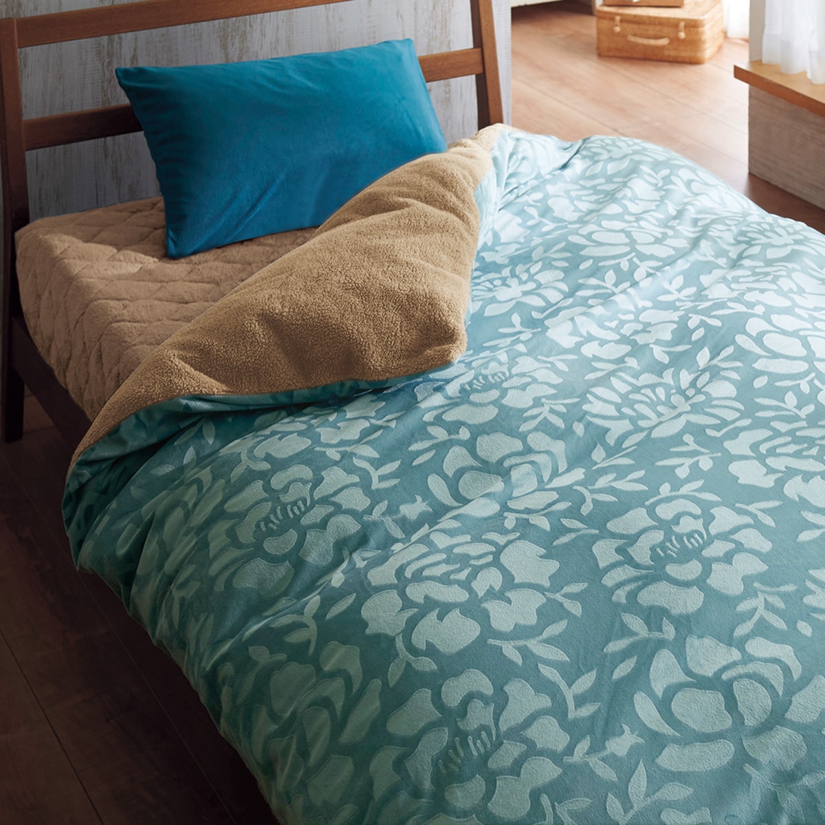 ターコイズブルー(花柄) ※商品は布団を包む毛布です。