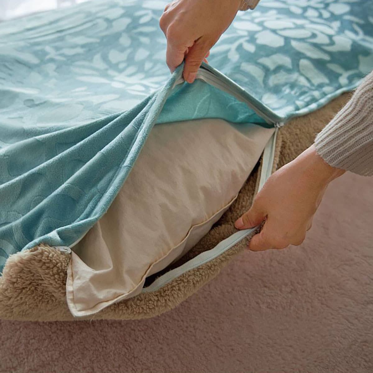 毛布とカバーの機能を一つに!布団を包んでズレない毛布。