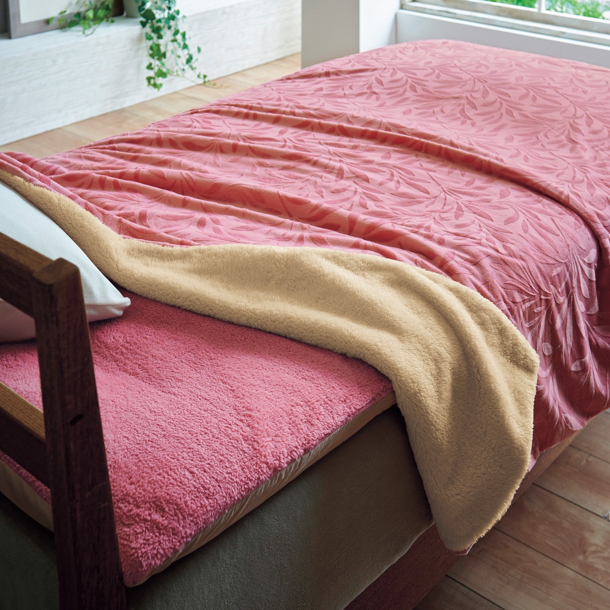 ピンク(リーフ柄) ※商品は布団を包む毛布です。布団を外せば1枚の毛布としても使えます。