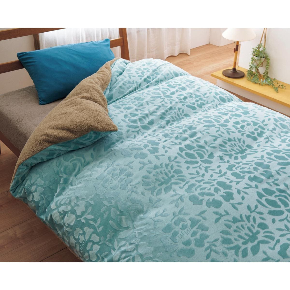 ターコイズブルー(花柄)カバータイプの毛布なので、どんなに動いても毛布と布団がズレません。
