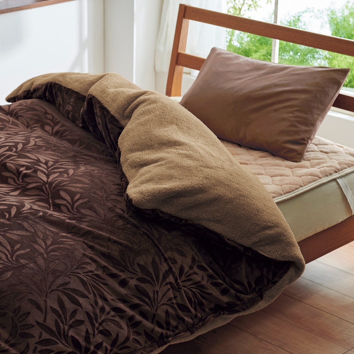 ブラウン(リーフ柄) ※商品は布団を包む毛布です。※パッドシーツはCZ-659を使用しています。