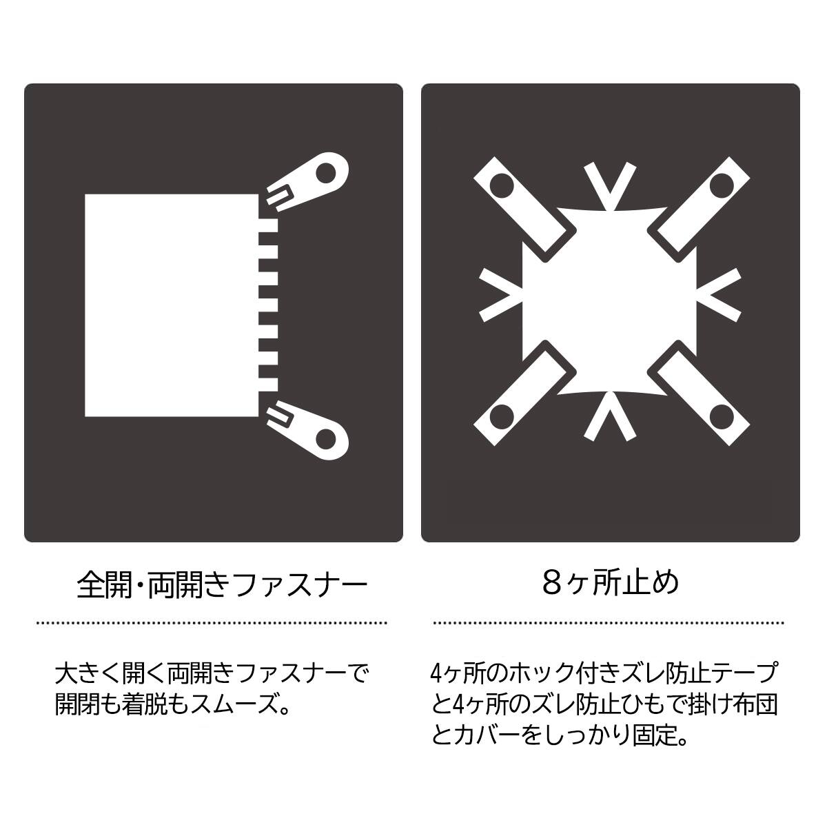 全開・両開きファスナー仕様4ケ所ホック付きズレ防止テープ+4ケ所ズレ防止ひも付き
