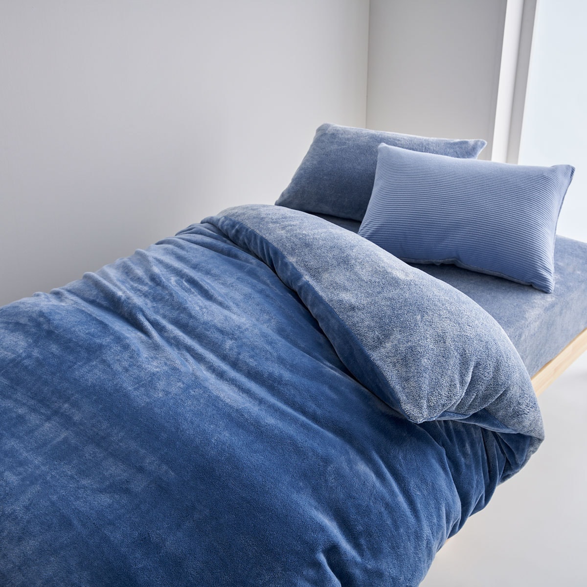 布団と毛布を重ねて使っていたら、いつの間にか布団がずり落ちていて寒い…そんなお悩みにお応えした、布団を包む毛布です。肌側のグランド部分に、体から出る汗などの水分を吸収して熱へと変える吸湿発熱素材「スマートヒート®」を使用。掛け布団カバーとの違いは、生地の毛足の長さとその保温力。空気をたっぷり含み、ぬくもりをしっかり捉えて逃しません。これ1枚で、毛布を重ね掛けしたような暖かさに。布団を外せば1枚の毛布としても使えます。汚れたらご家庭の洗濯機で気軽に洗えます。