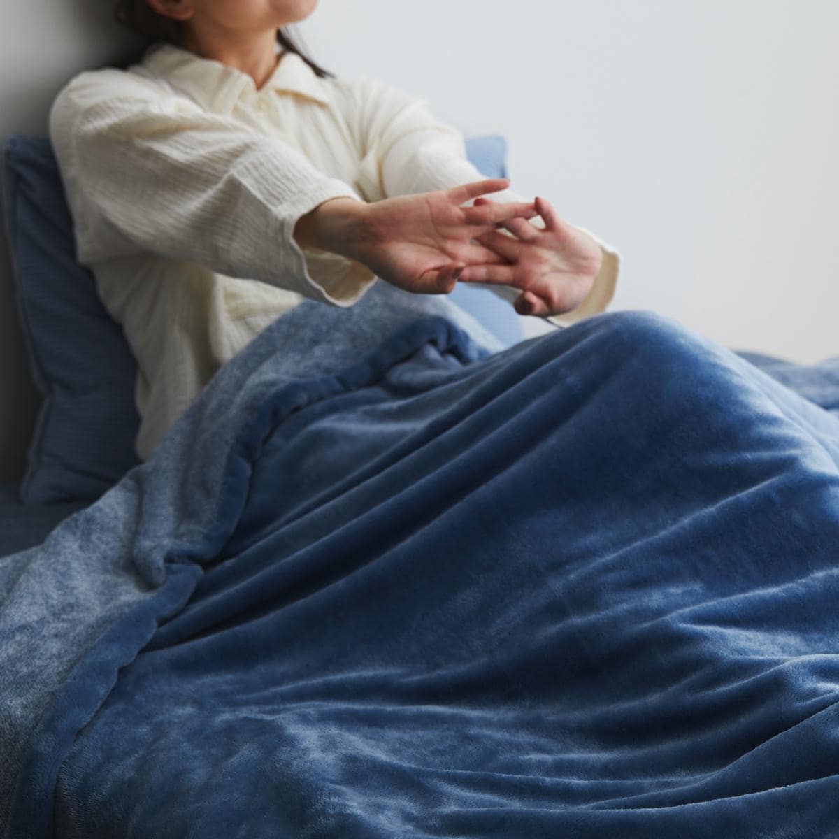 いつの間にか布団がずり落ちていて寒い…そんなお悩みにお応えした、吸湿発熱素材「スマートヒート®」の布団を包む毛布です。