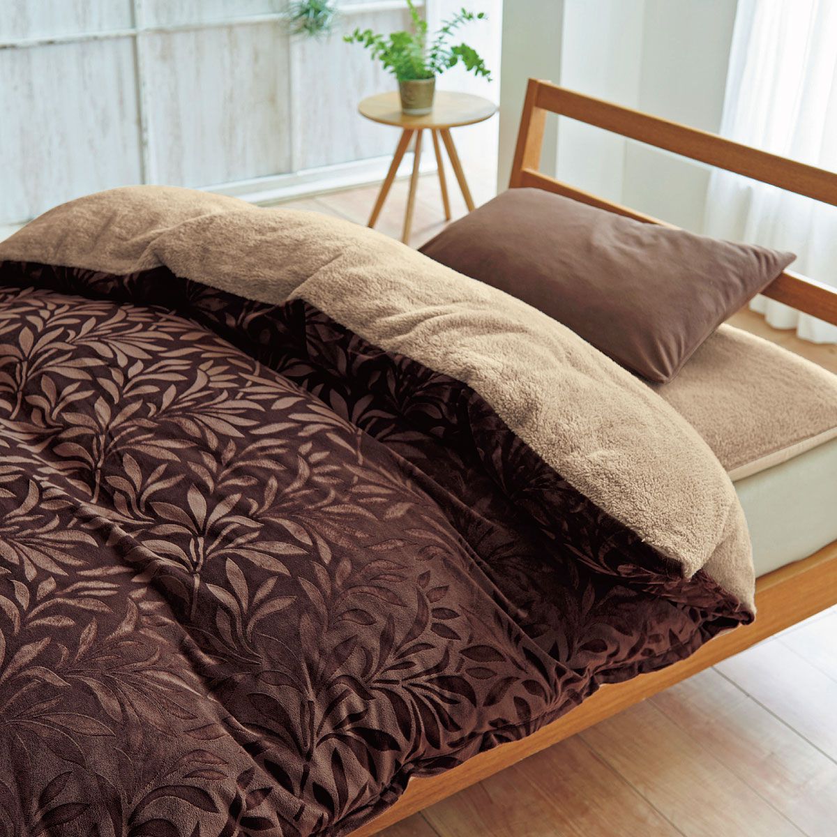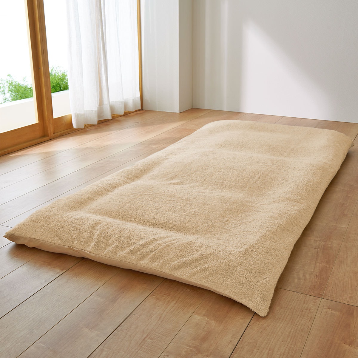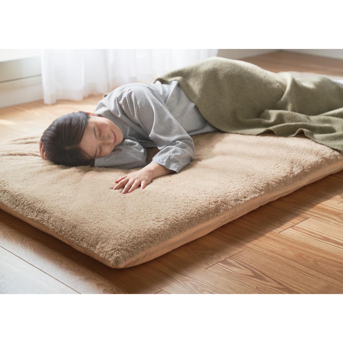 オークベージュ敷き布団も毛布の長い毛足でぬくもりキープ。