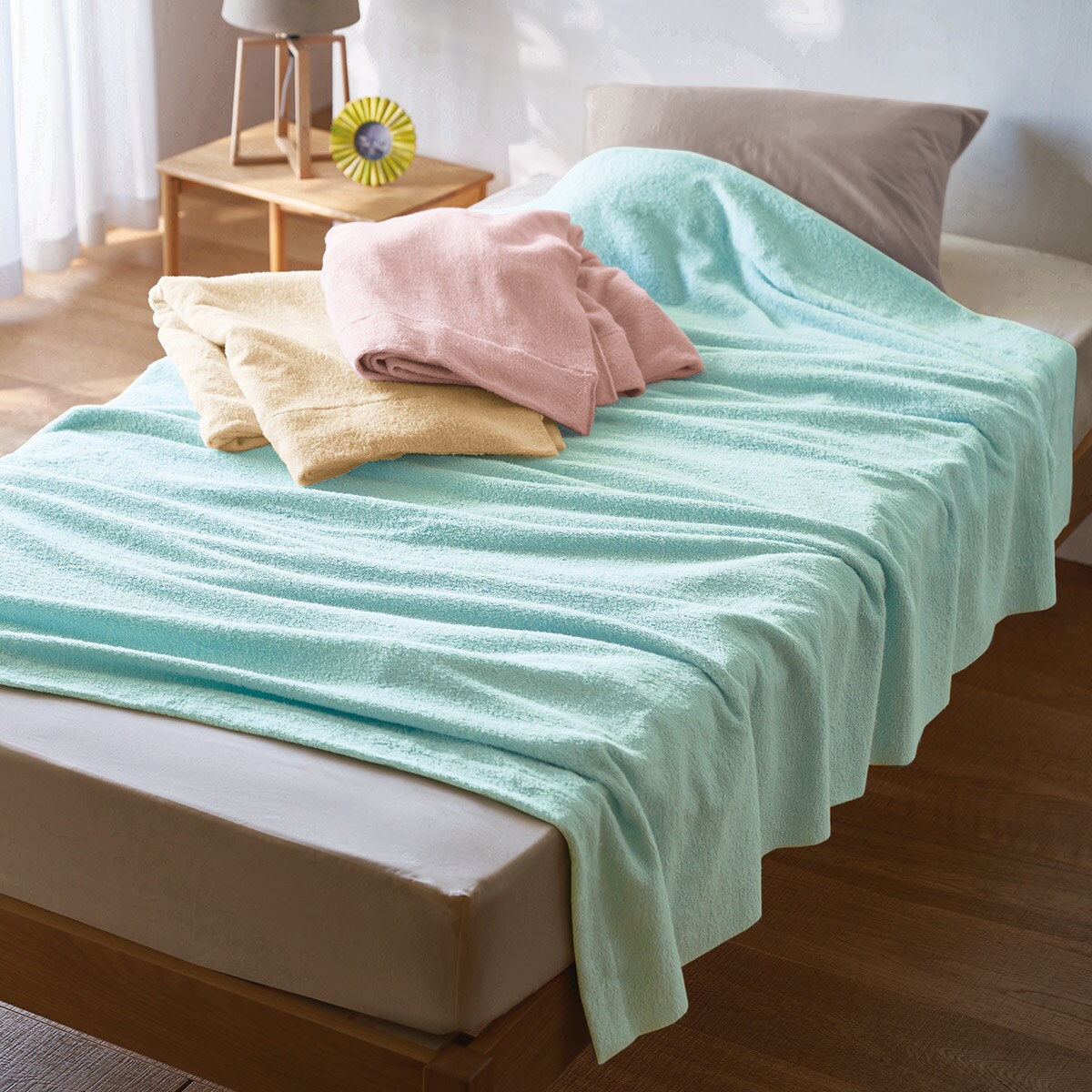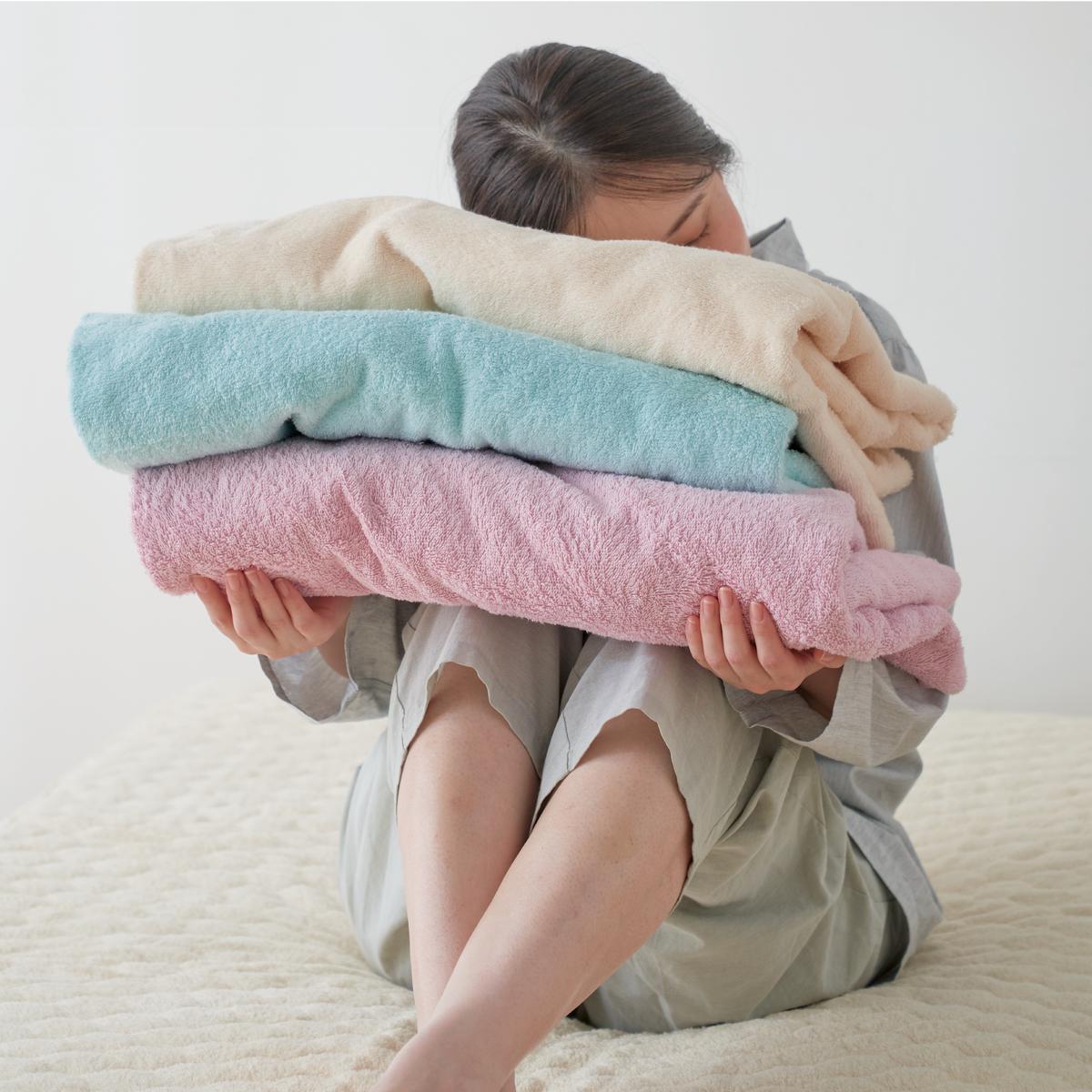 (上から) アイボリベージュ・ミスティブルー・ミスティピンク上質なタオルと眠るシアワセ♪