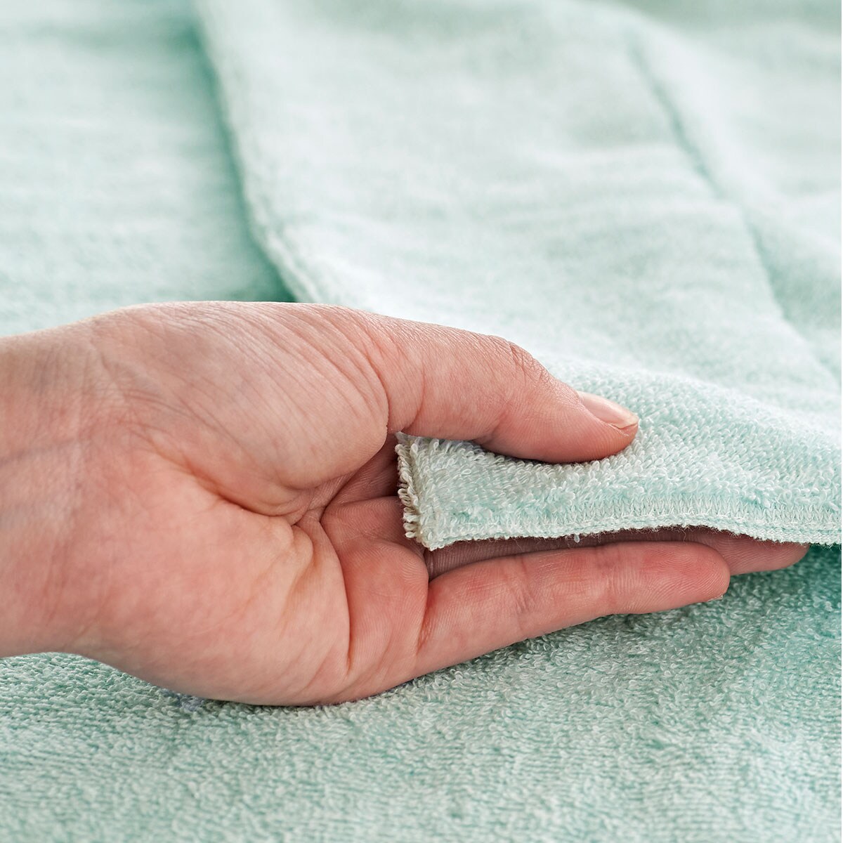 パイル糸を基布にからませて織り上げるマイヤー織りは、通常のタオル織りに比べてパイル抜けがほとんどなく、ほつれにくいのが特長です。