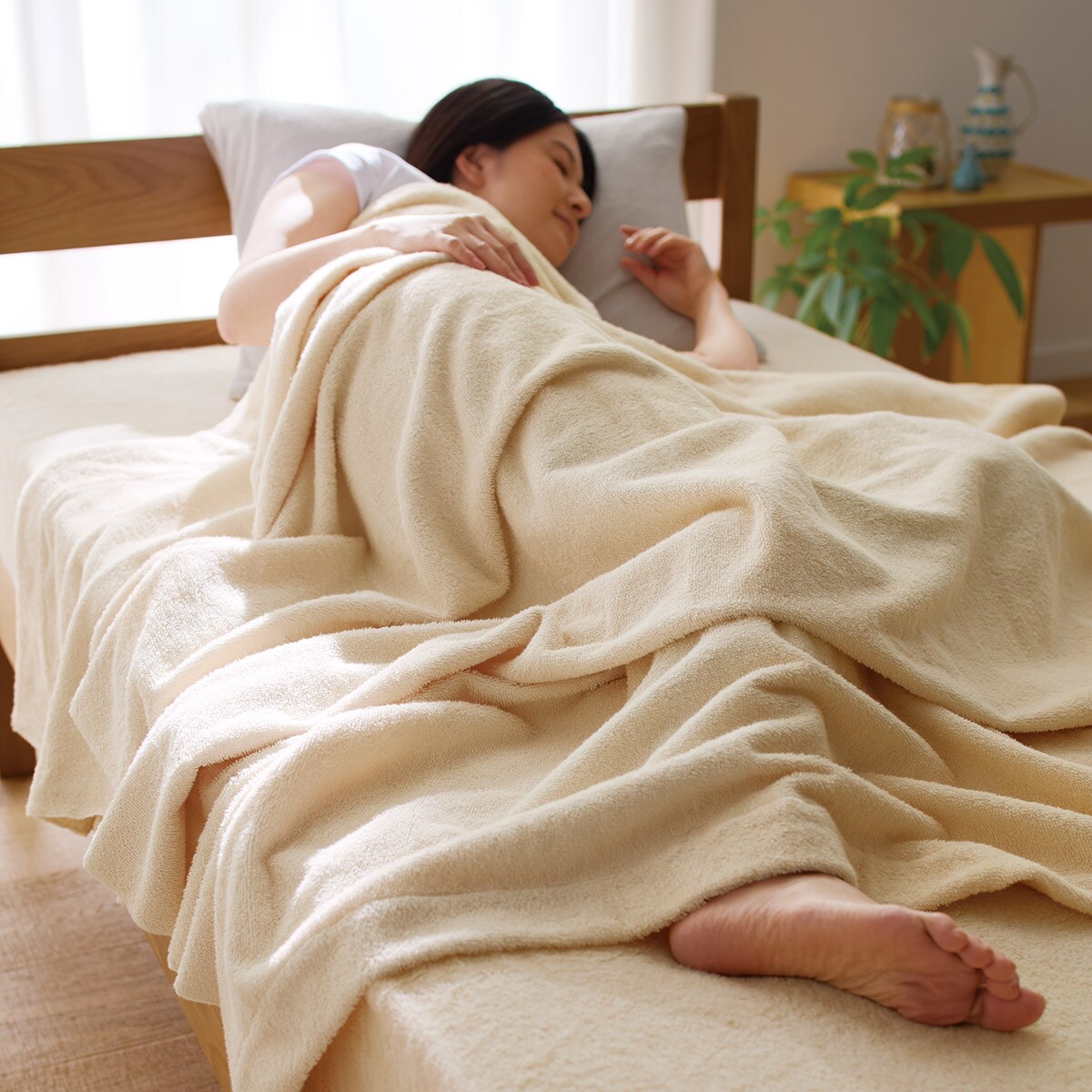 ふんわり優しいマイヤータオル素材で寝心地も快適。