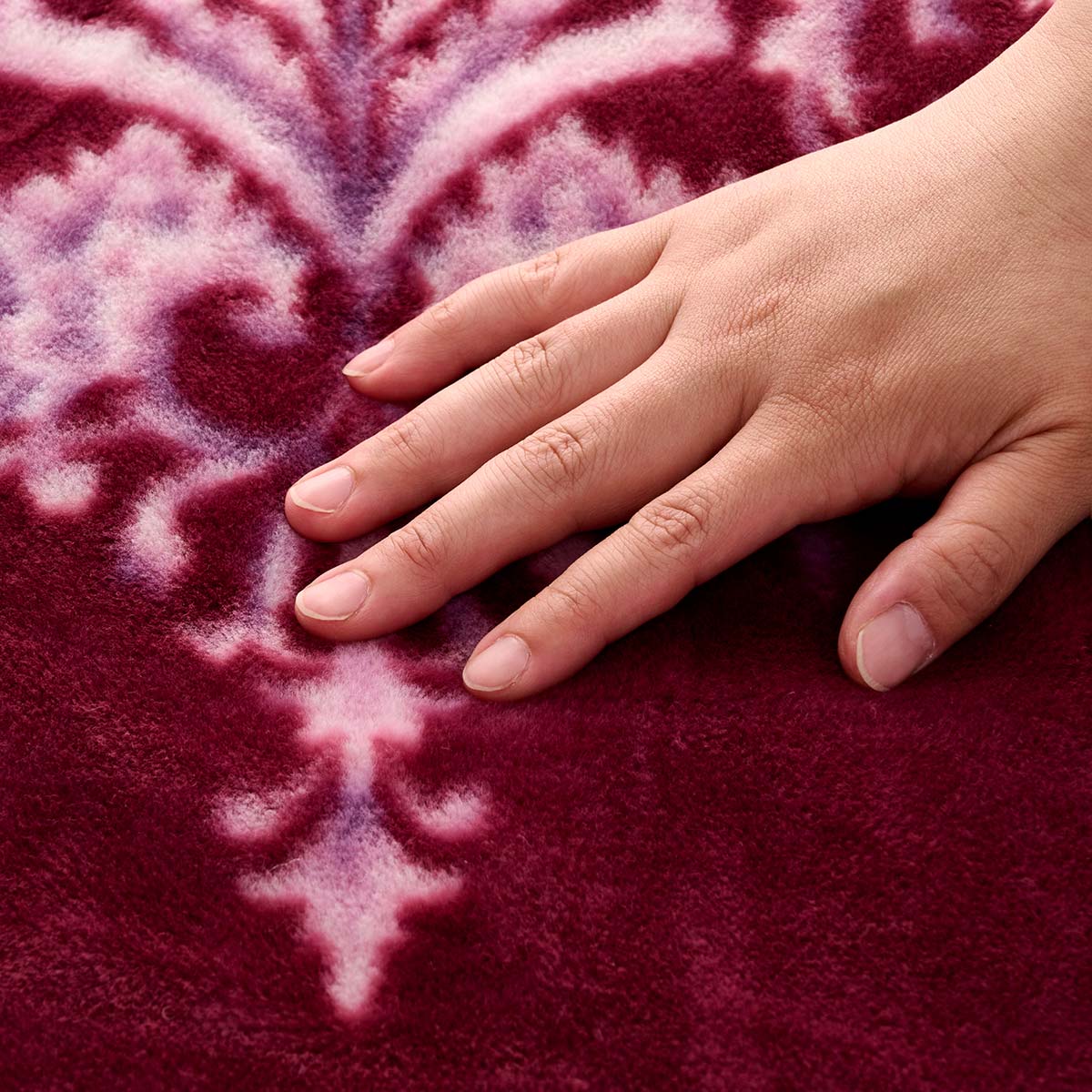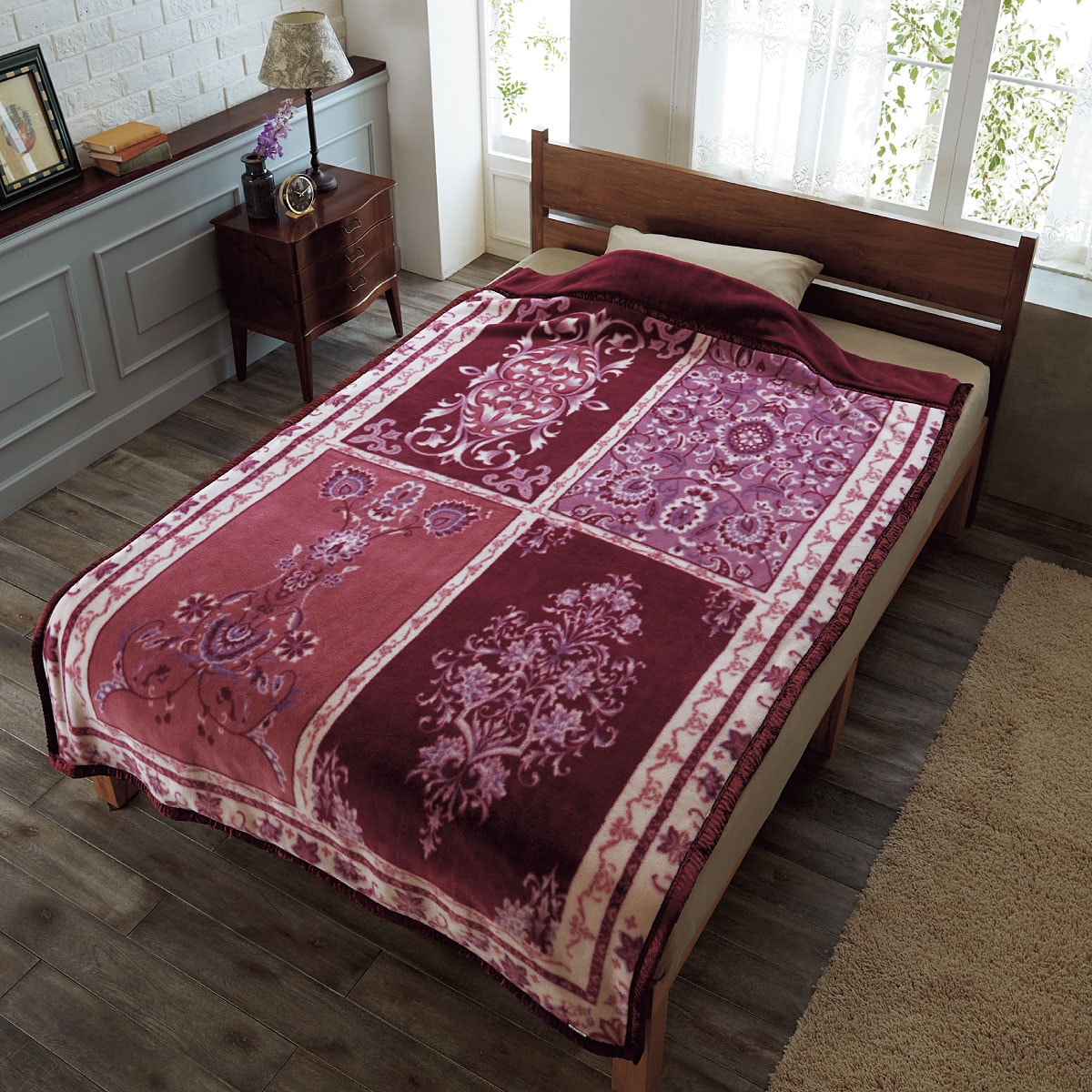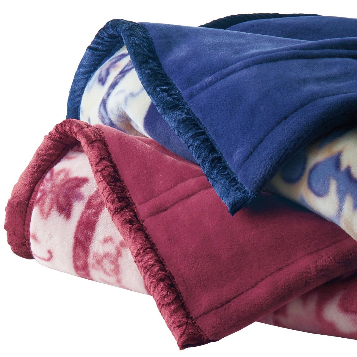 暖かさを追求した、ボリューム感たっぷりの2枚合わせ毛布です。毛羽が密集したアクリル生地は暖かい空気をためこみやすく、さらに2枚合わせの生地の間の空気層が高い保温力を発揮して暖かさがアップ。ふっくら軽く、丈夫なのでご家庭でお洗濯もOK。乾きも速く、型崩れしにくいのもうれしいポイントです。ゴージャスな柄が寝室を優雅に演出します。