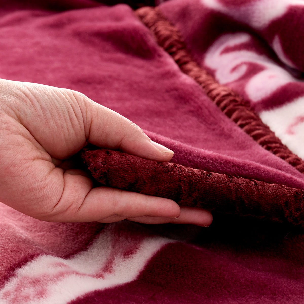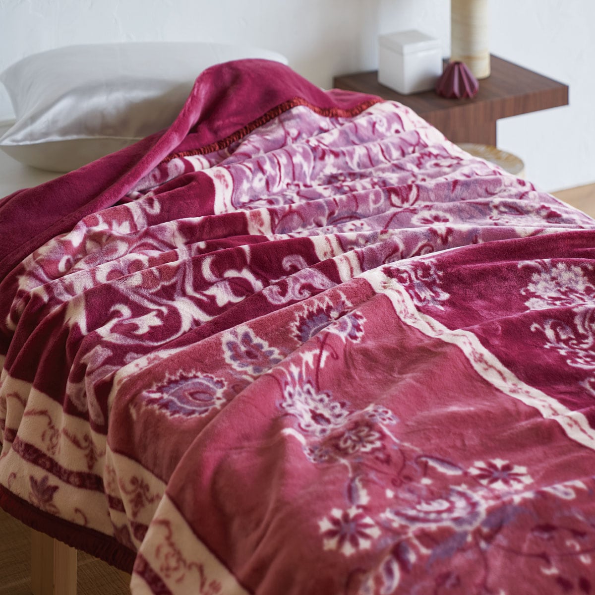 ワインふっくらリッチなボリューム感が特徴の、2枚合わせ毛布です。