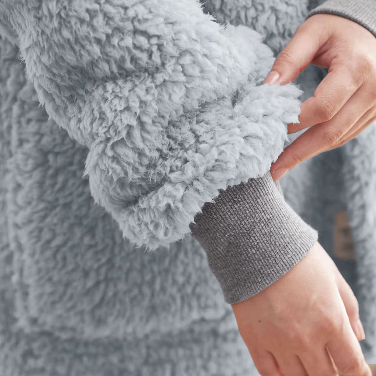 袖口はリブ仕様なので腕まくりができ、家事や洗顔などの作業がしやすい。