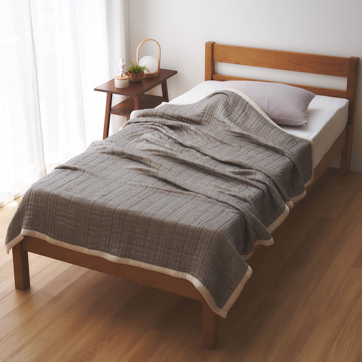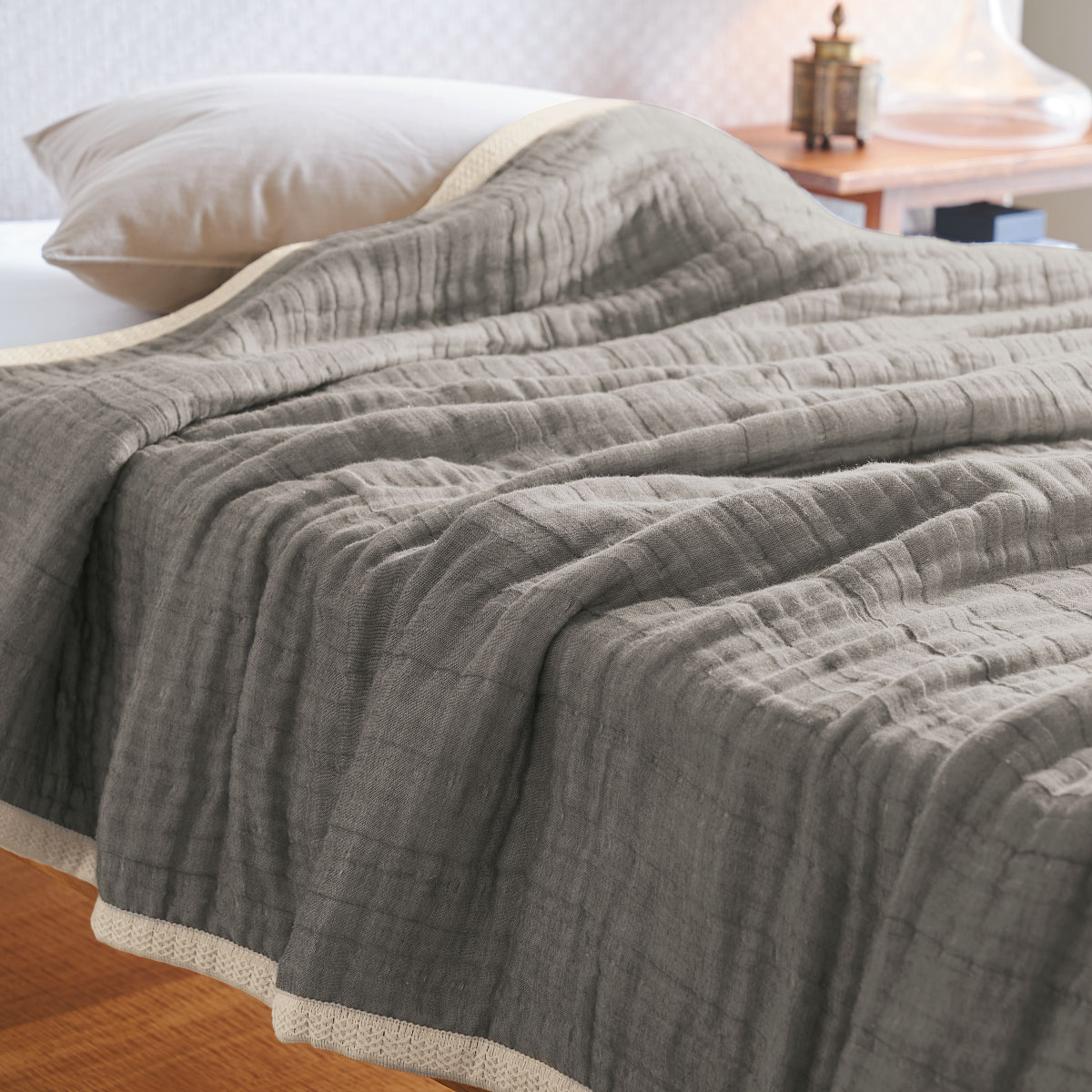 グレーふんわりやわらかなボリュームの8重ガーゼケットです。
