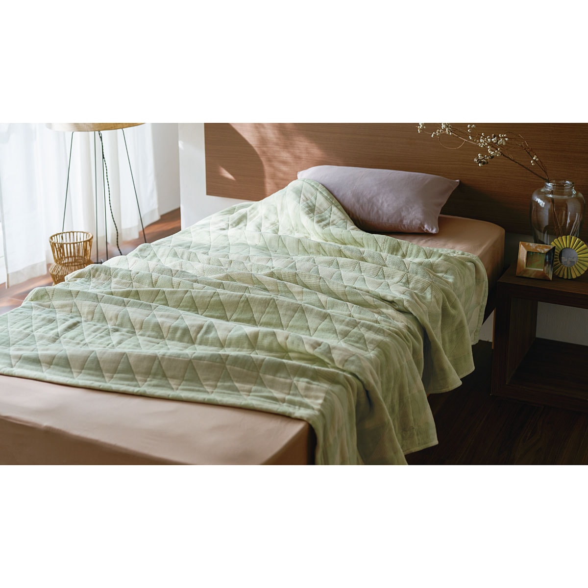 グリーン系肌ざわりのよさを追求し、伝統の技で作られた三河木綿ガーゼケットです。