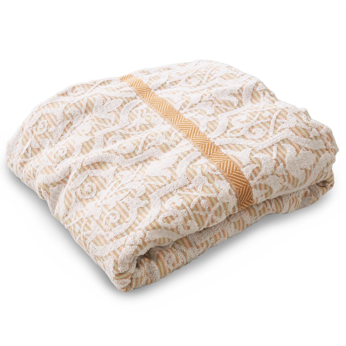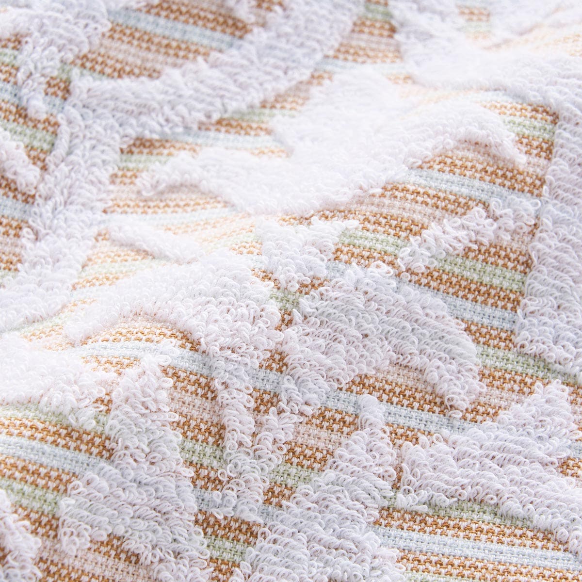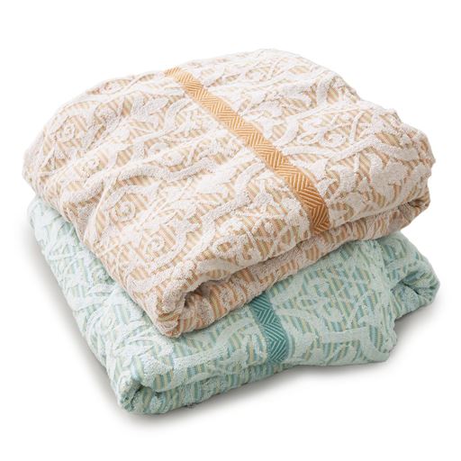 立体的に柄が浮き出るようなジャカード織りが寝室を華やかな印象に演出する、先染めタオルケットです。綿100%のタオル生地はムレにくく、吸汗性にも優れているのでサラッと快適。今治タオルブランド認定商品で安心の国産品質。洗濯機で丸洗いできるので、いつも清潔にお使いいただけます。