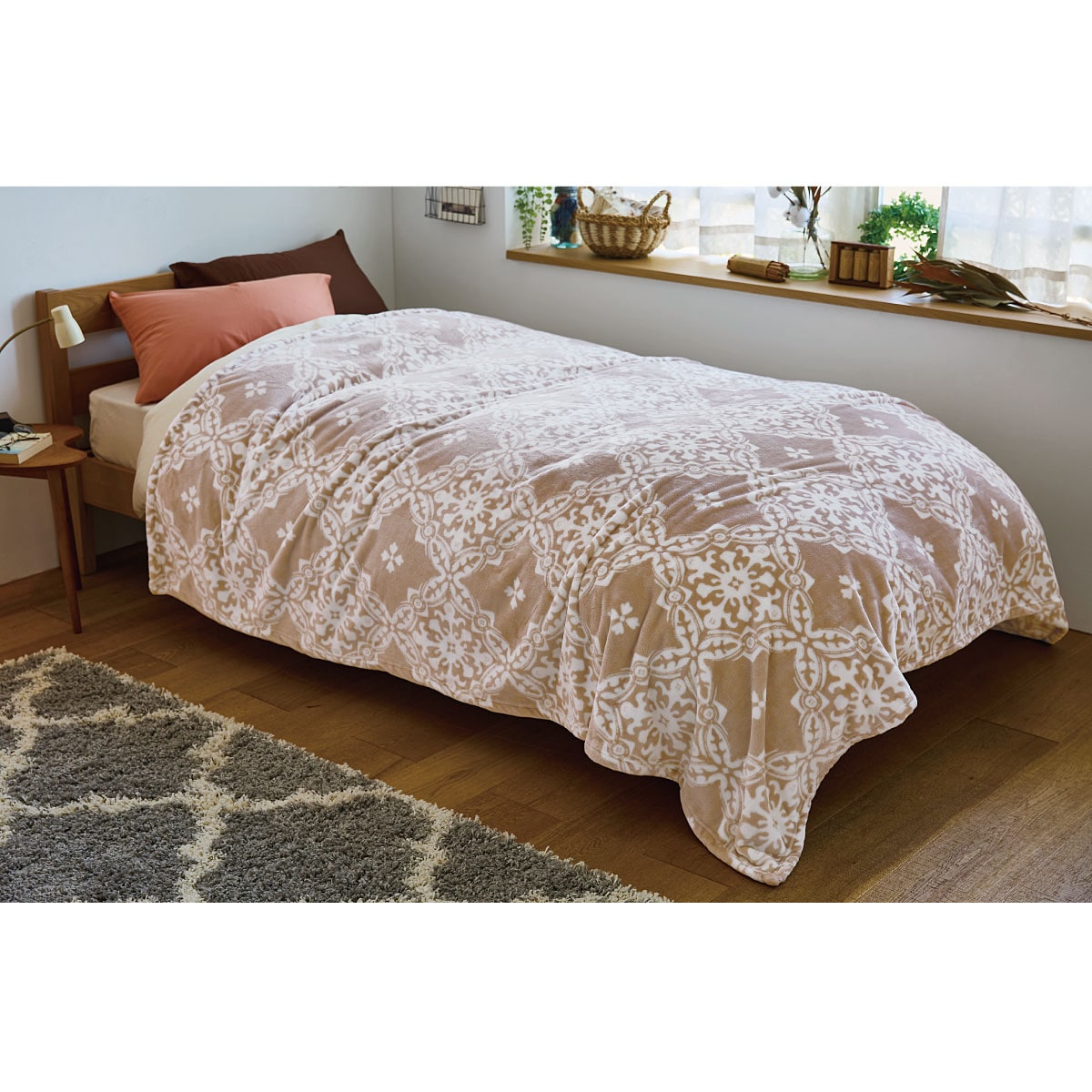 羽毛布団の上から毛布を掛けると、羽毛布団の吸湿発熱性を妨げることなく保温性を高められることをご存知ですか?この羽毛布団の上に掛ける毛布は、大きめサイズで布団の裾から入る冷気を遮断。さらに軽さにもこだわられているので、羽毛布団をつぶすことなく保温性を高めてくれます。もちろん羽毛布団以外の掛け布団も高価を発揮します。また、マルチカバーとしても使えるサイズ感は急な来客時にも便利♪こだわりの柄がお部屋をおしゃれな空間に仕上げてくれます。