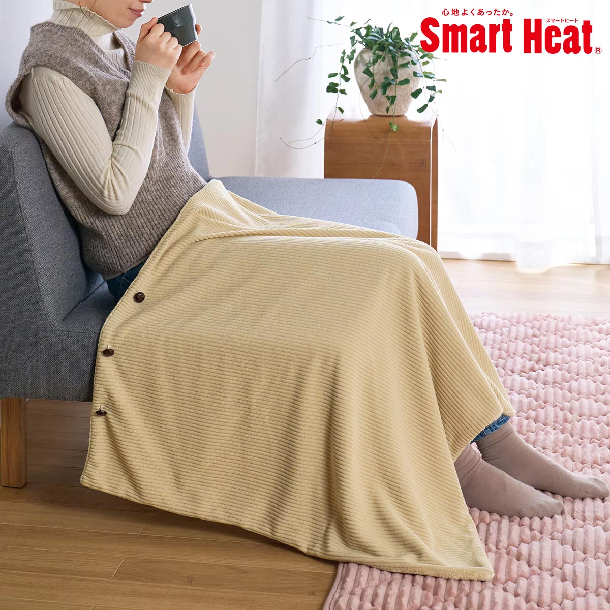 3通りに使えてどこでもあったか! 吸湿発熱素材「スマートヒート®」を使用したあったかブランケットです。ボタン付きなので腰に巻いたり肩に掛けてもズレにくいのがポイントです。