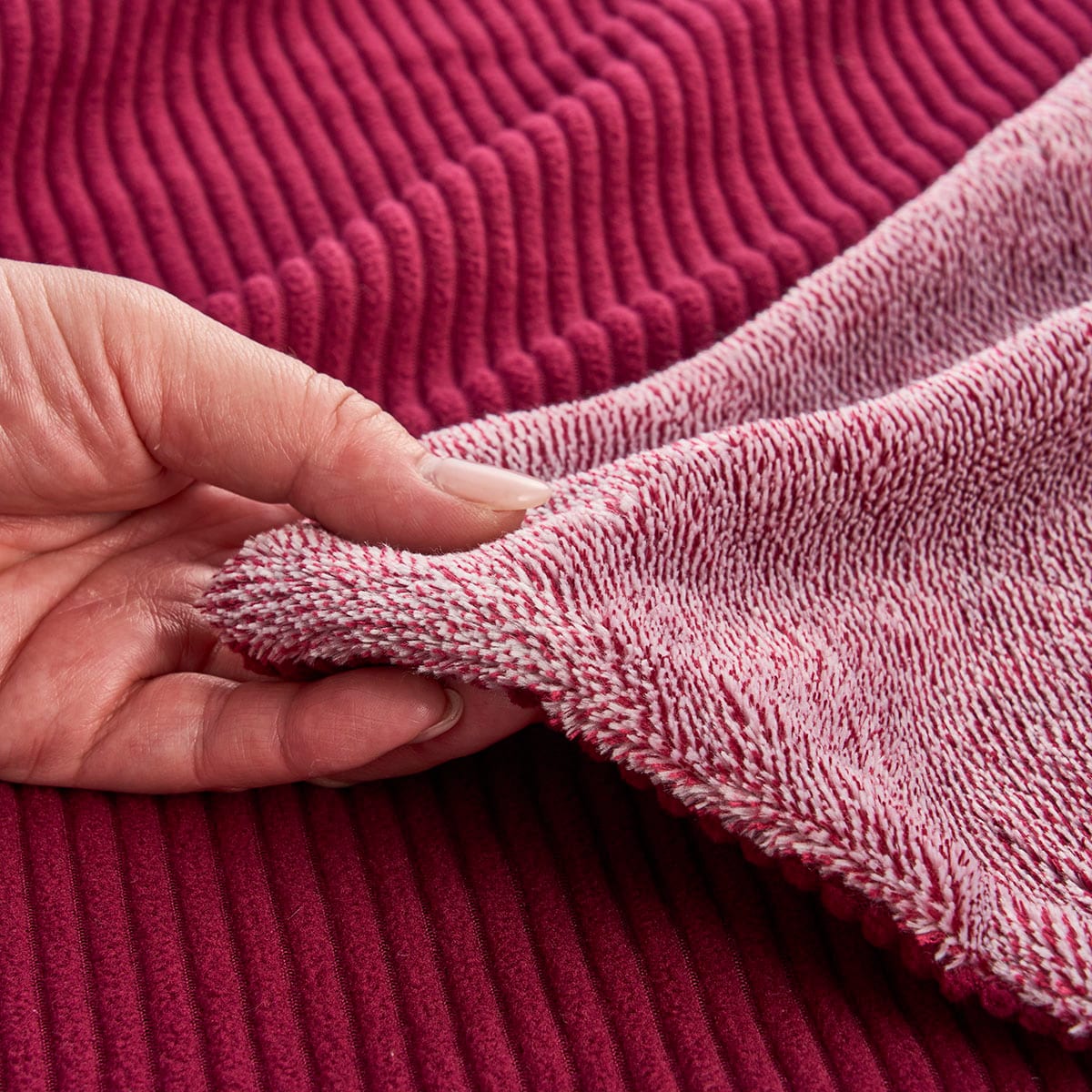 ワイン系みっしり細かい毛足がとろけるような肌ざわり。