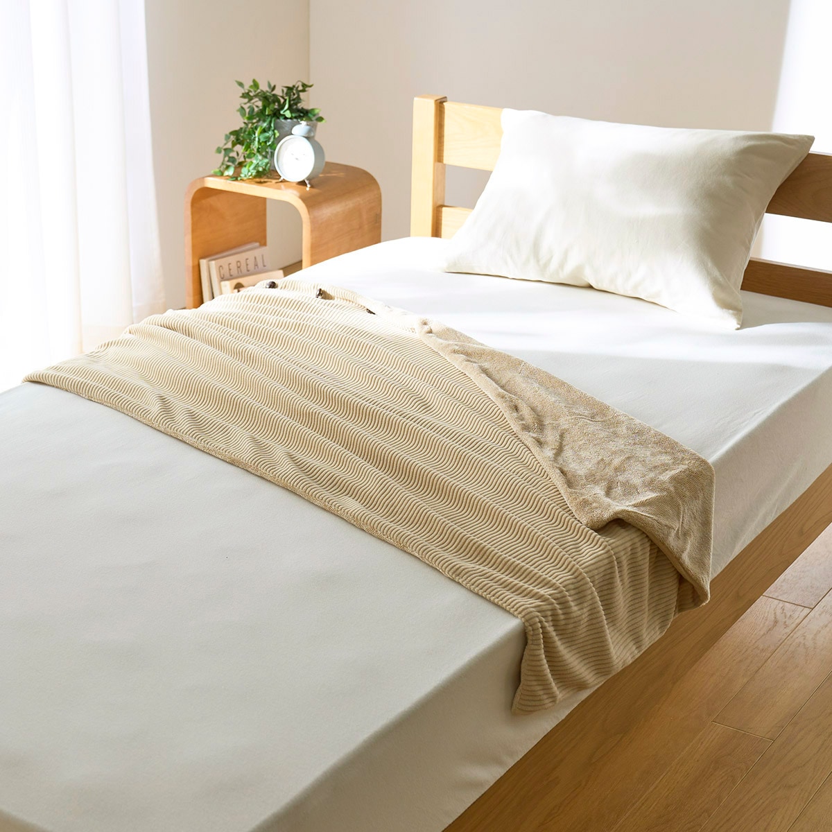 ベージュ3通りに使えてどこでもあったか! スマートヒート®あったかブランケットです。